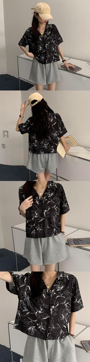 プリント柄ショートシャツ ルーズカジュアルカラー クレセントシティ52775334852