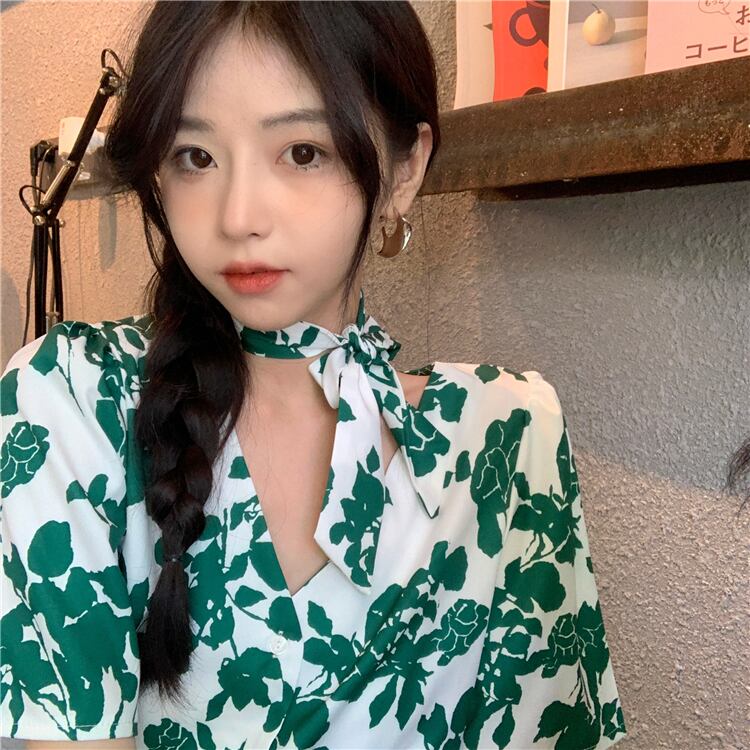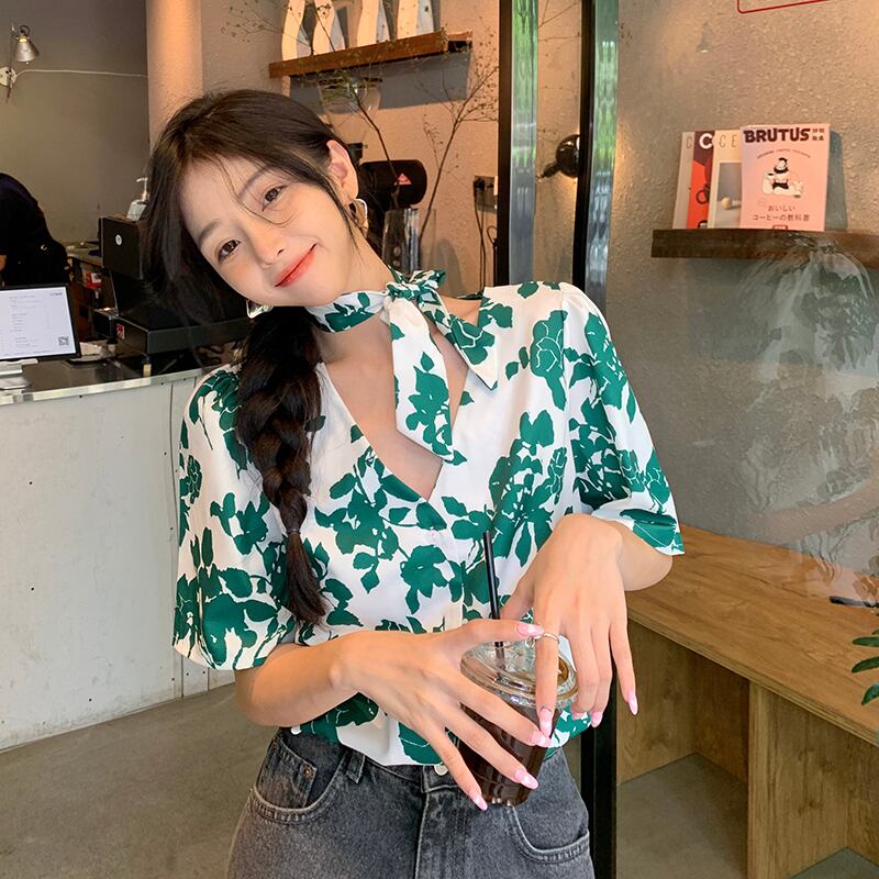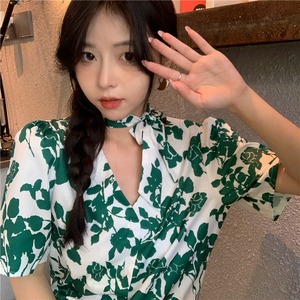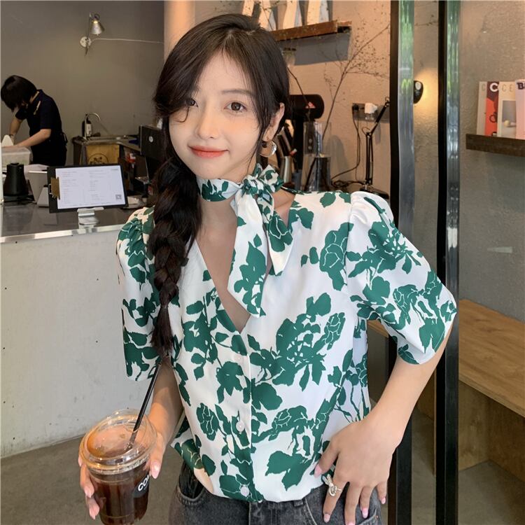 Vネックフローラルシャツ サマールーズ薄手 夏物 花柄 クレセントシティ71288810006