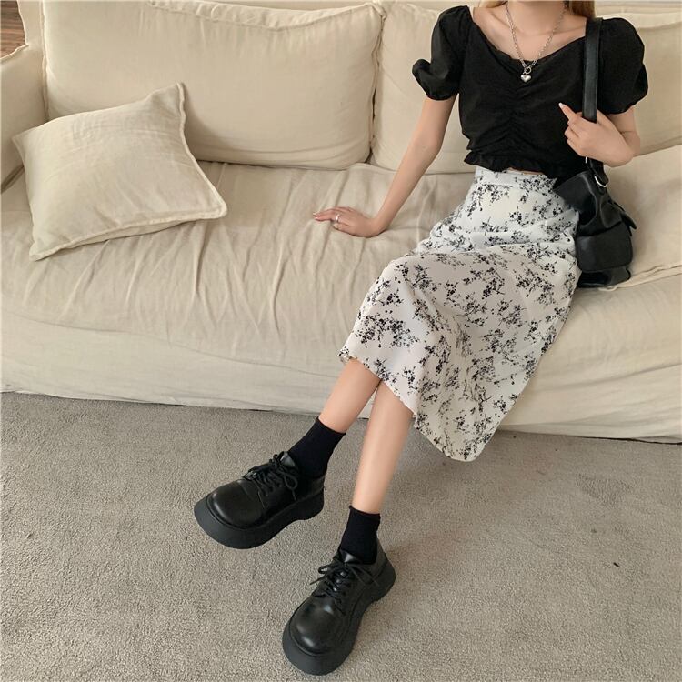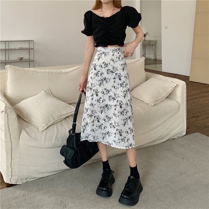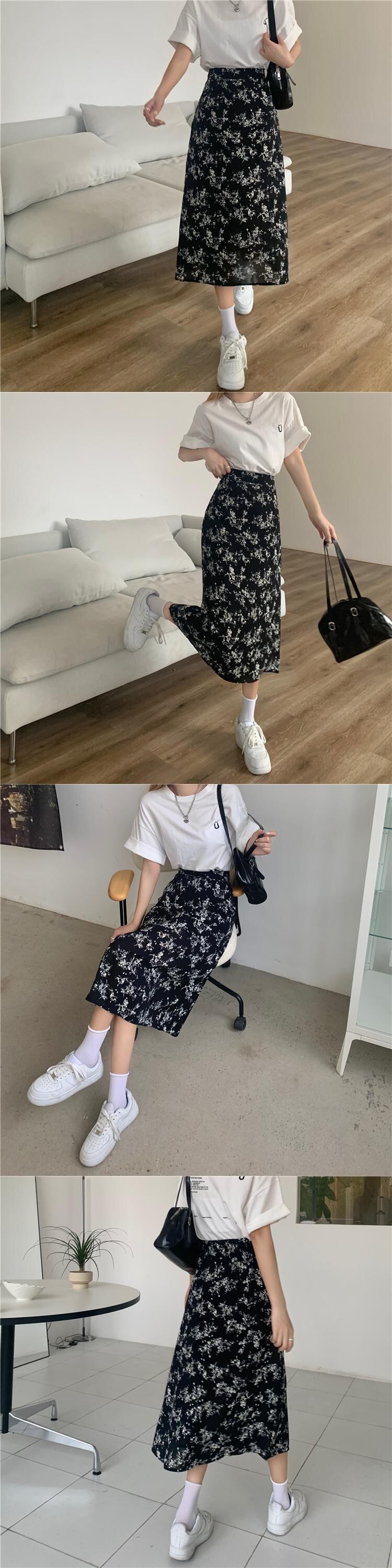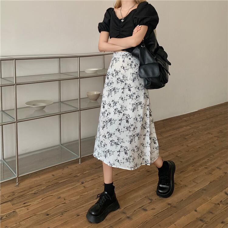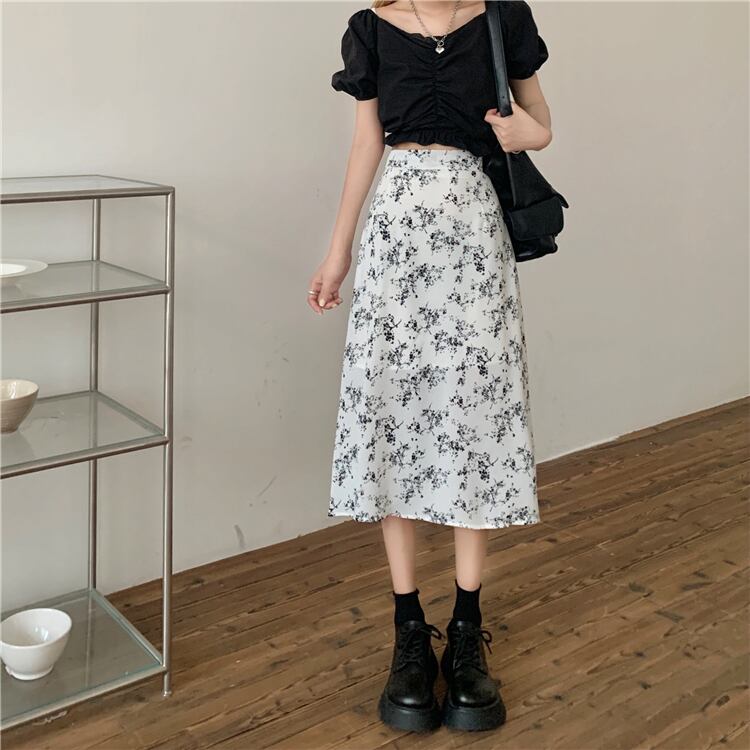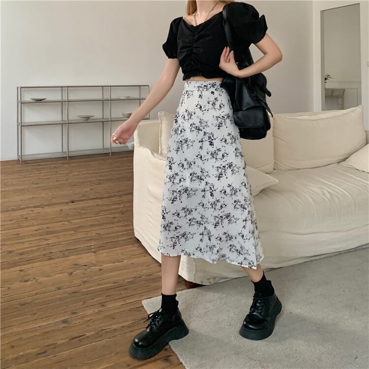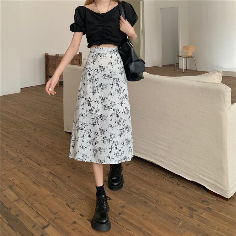 サマーフローラルスカート ハイウェスト薄手Aライン 夏物 花柄 クレセントシティ79159653990