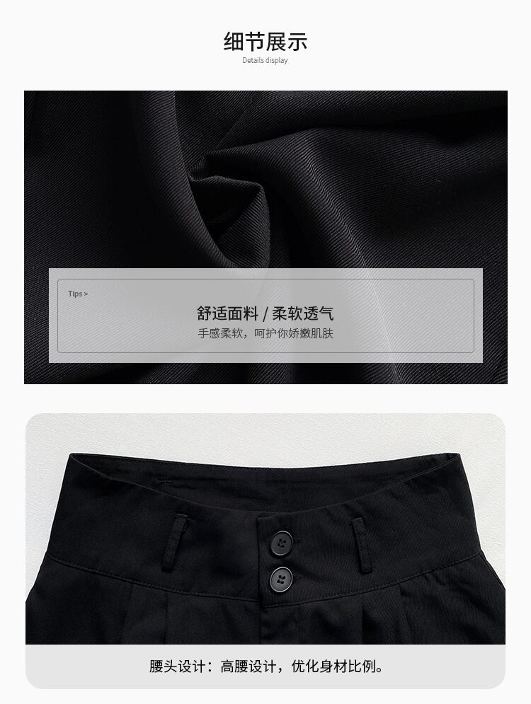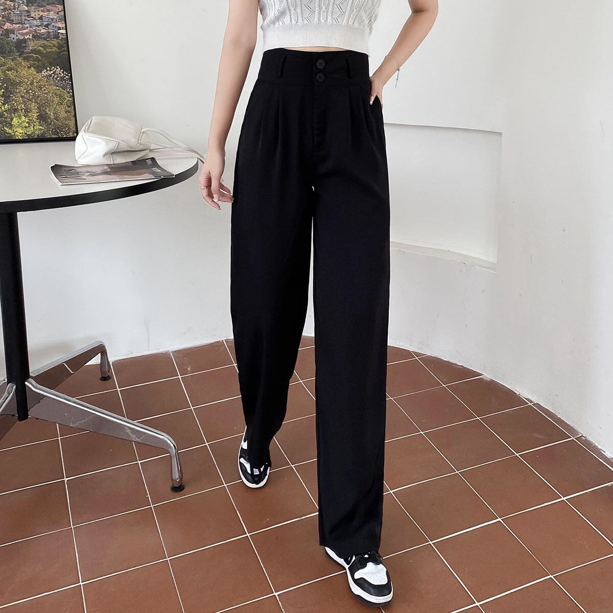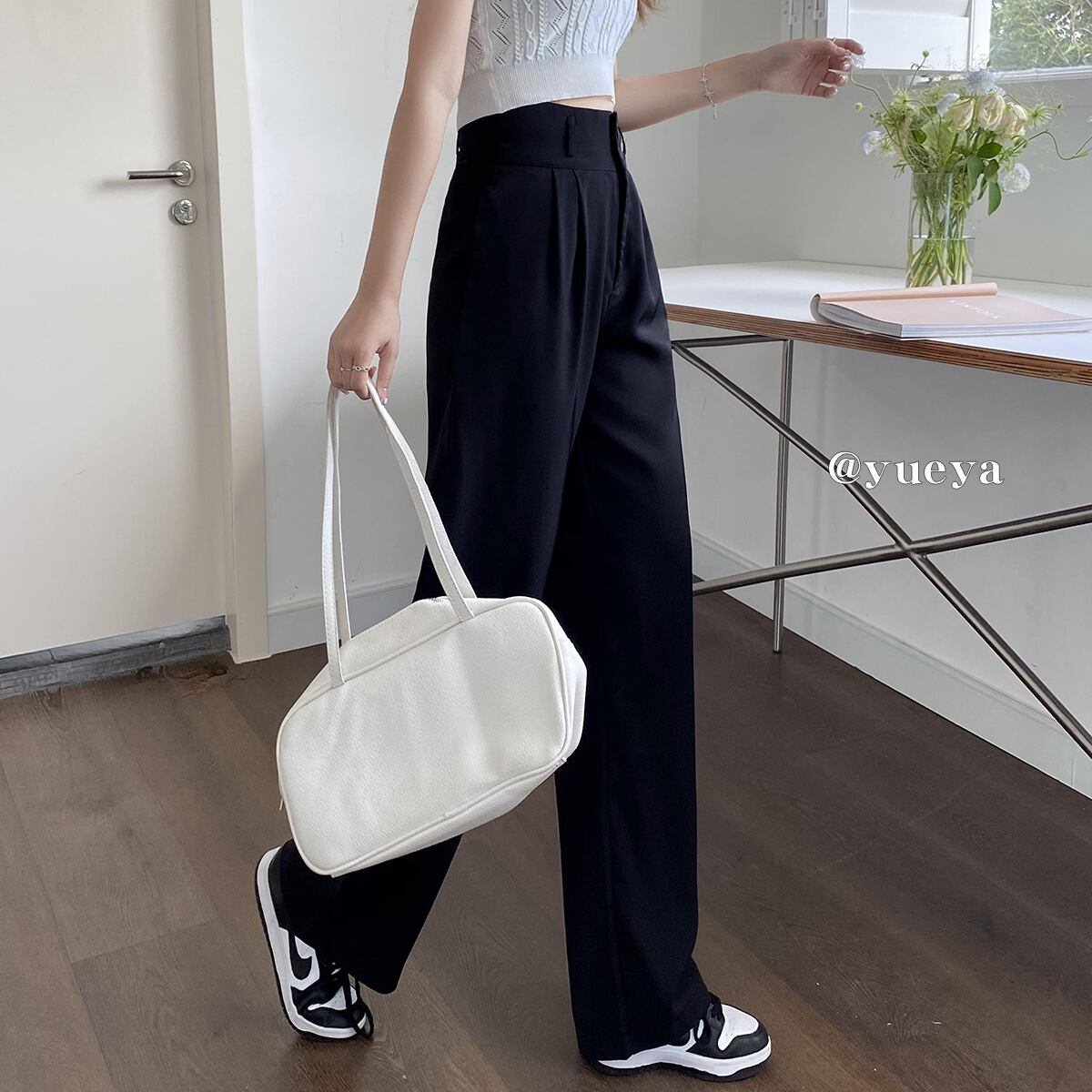 サマーパンツ レディースルーズブラックハイウェストウェストワイドレッグカジュアル 夏物 ワイドパンツ クレセントシティ98926317731