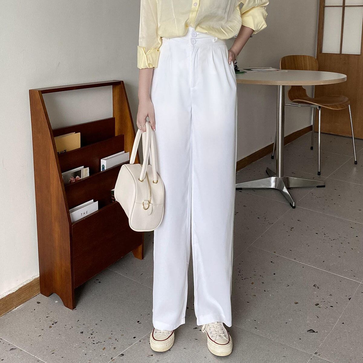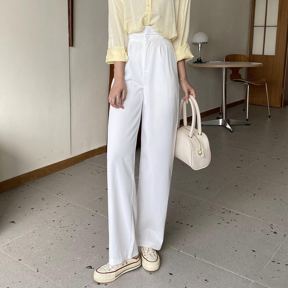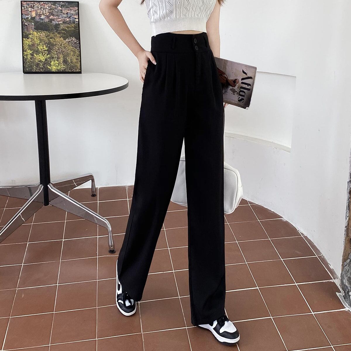 サマーパンツ レディースルーズブラックハイウェストウェストワイドレッグカジュアル 夏物 ワイドパンツ クレセントシティ98926317731