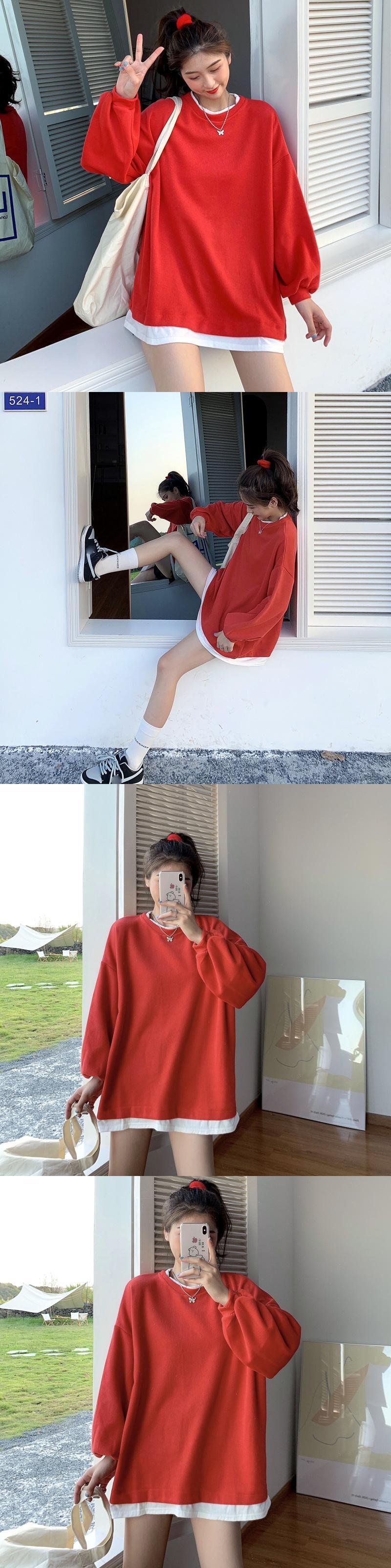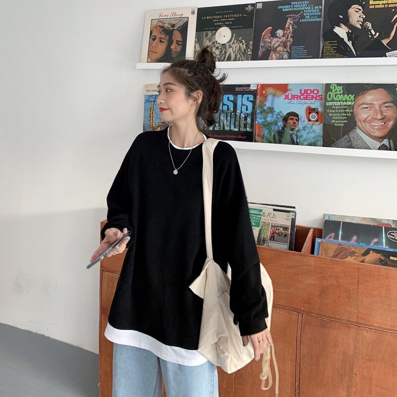 オータムセーター ルーズラウンドネックプルオーバー ブラウス ロング 秋物 Oネック クレセントシティ31691821941