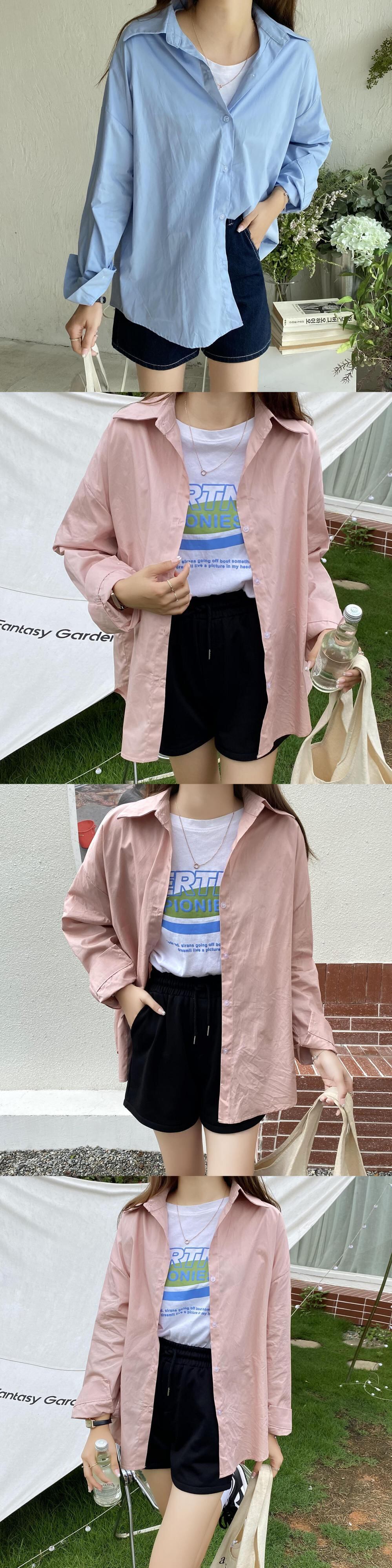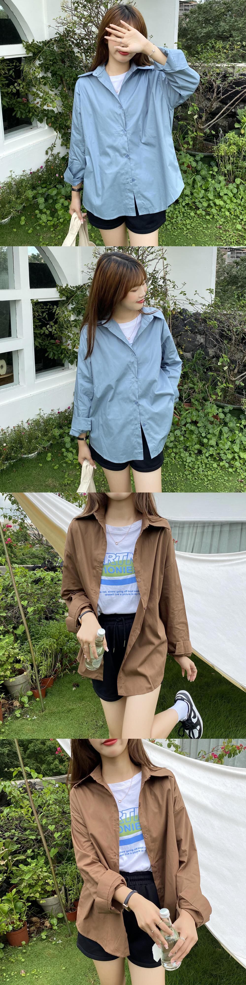 ブルーシャツ オータムカジュアルルーズ薄手 ロング 秋物 クレセントシティ51172820011