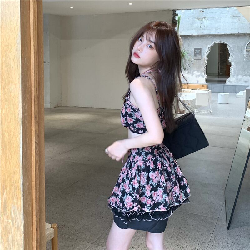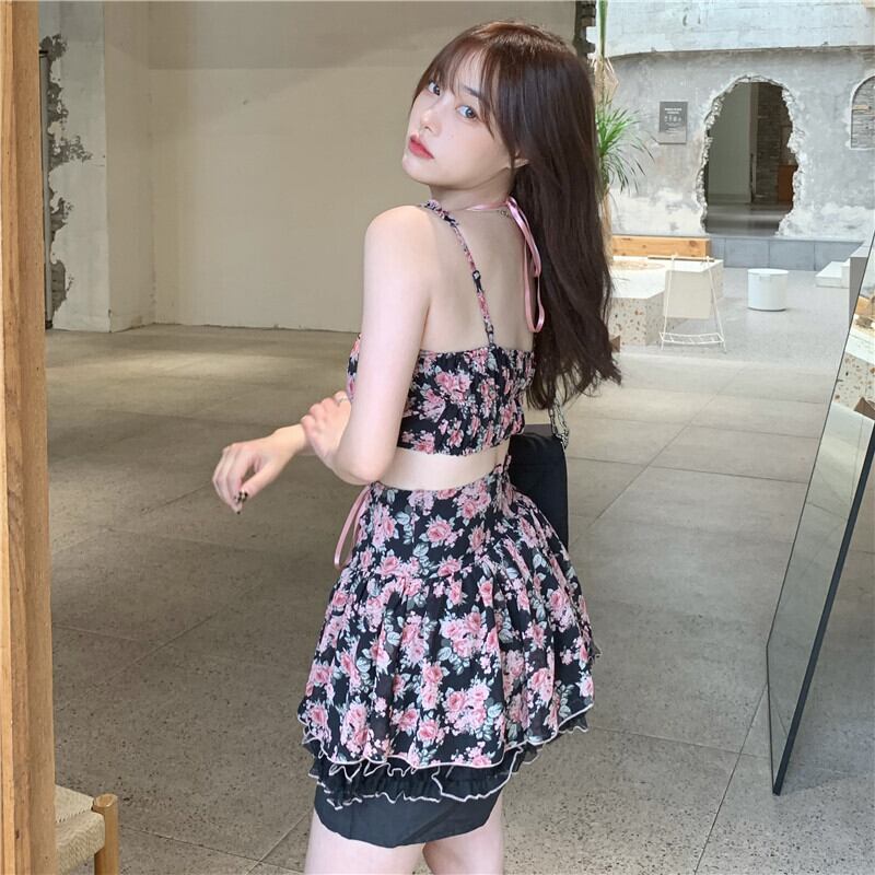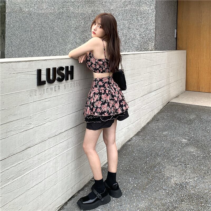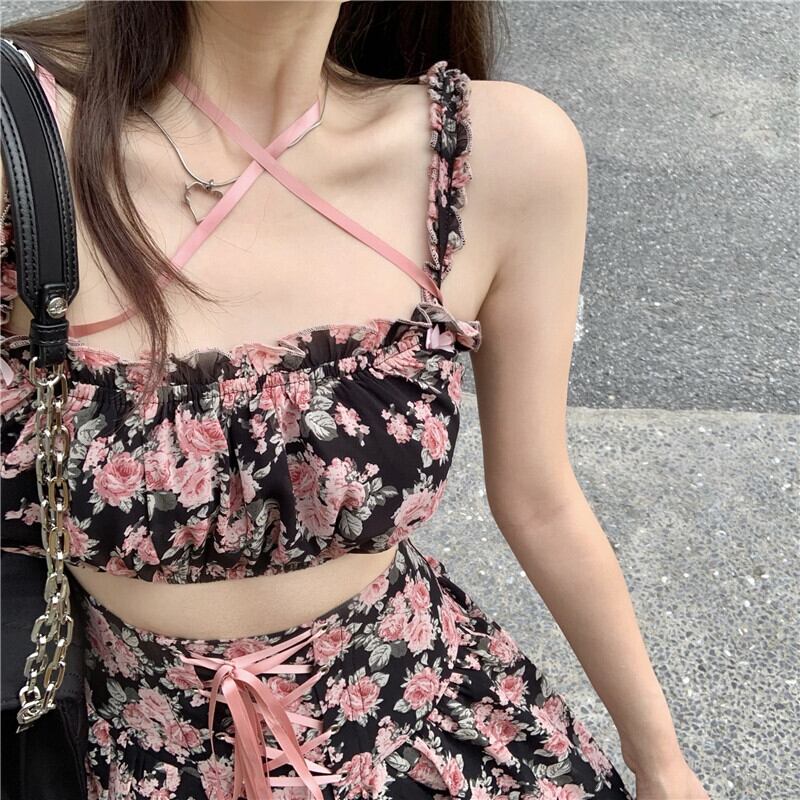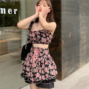 サマーハイウェストウェストフローラルAラインスカート 大人ガーリー スウィート キュート カジュアル 夏物 花柄 クレセントシティ86714318149