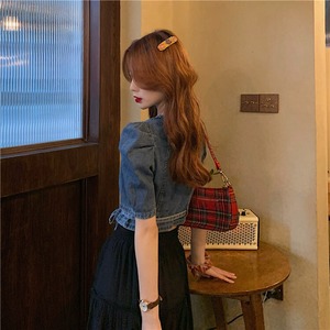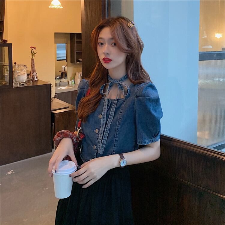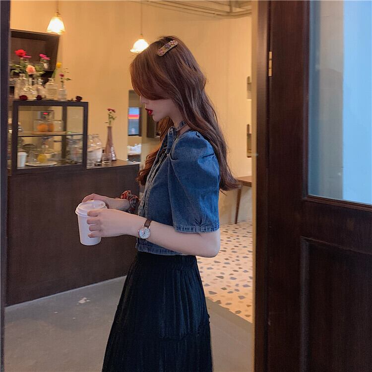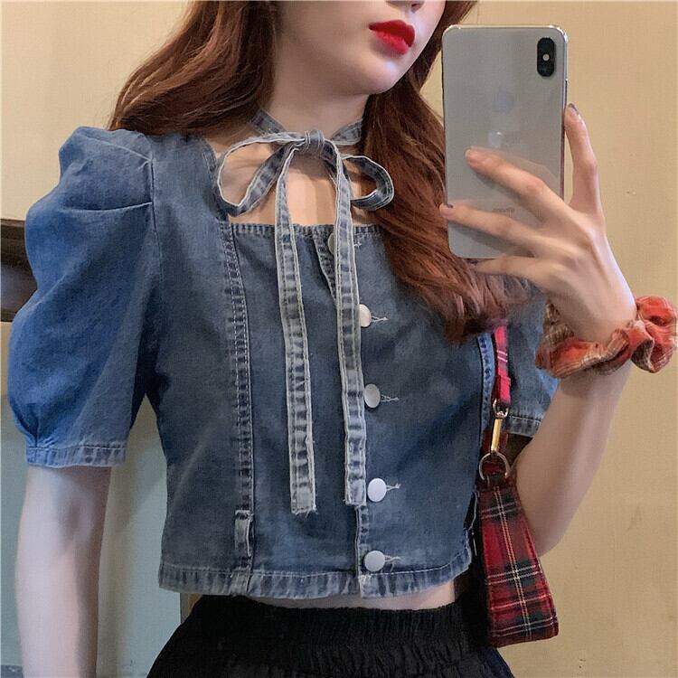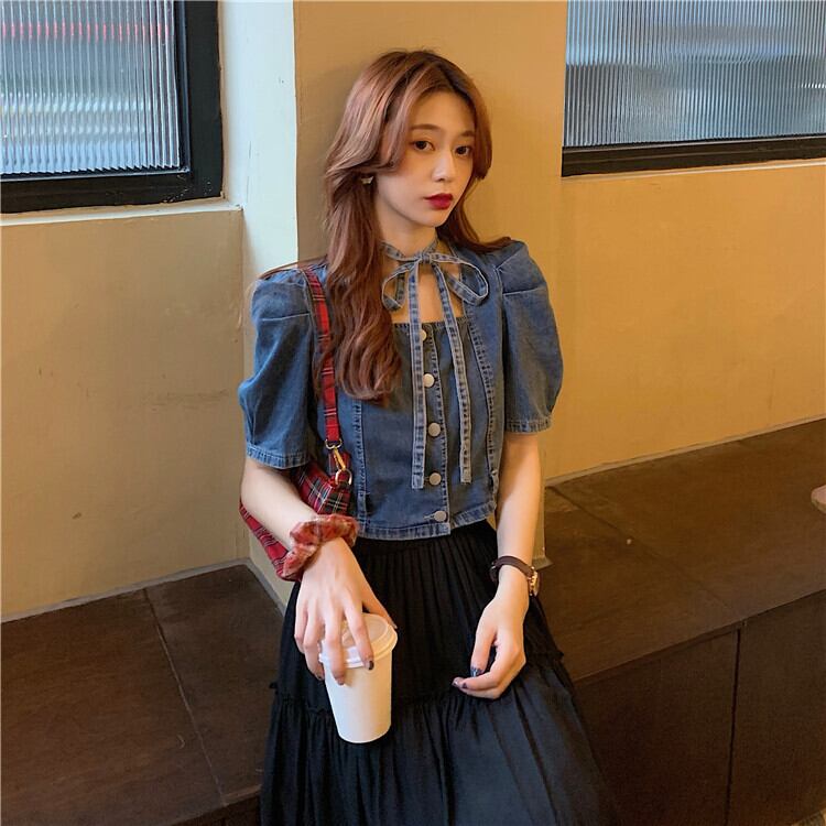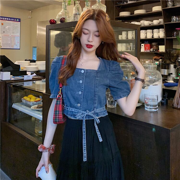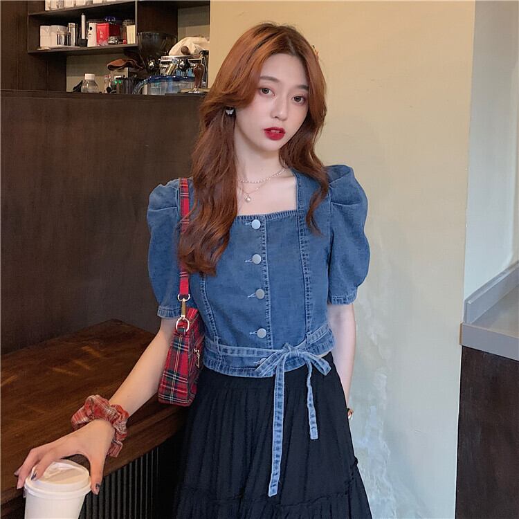 サマースタイルジャケット バンドハイウェストウェストショートスリーブシャツ ストリート 夏物 スクウェア クレセントシティ99064842121