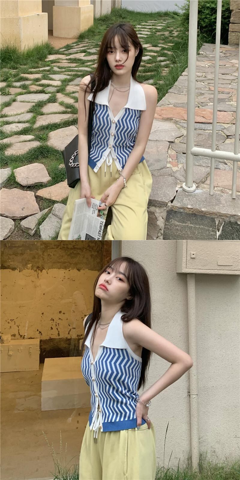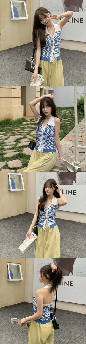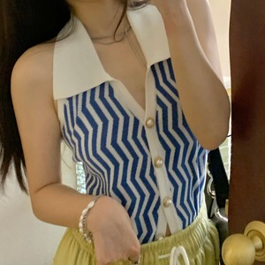 スタイルホルターサマーストライプノースリーブセーター トップス 夏物 クレセントシティ11531573298