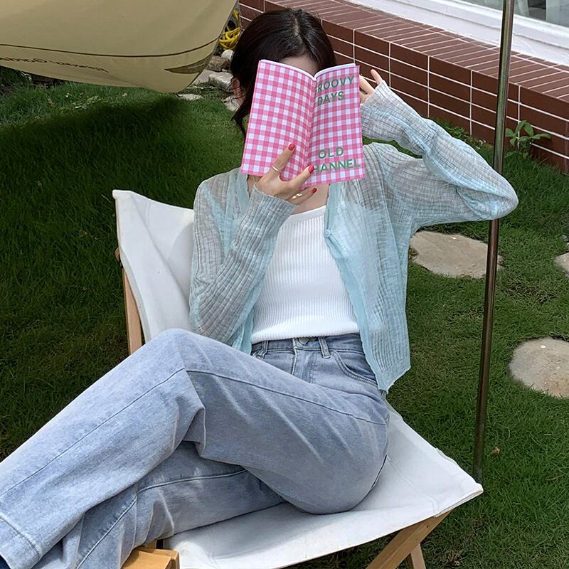カーディガンサマー薄手カラー長袖スリーブシャツ ジャケット トップス ロング 夏物 シルク ピュア クレセントシティ47862684020