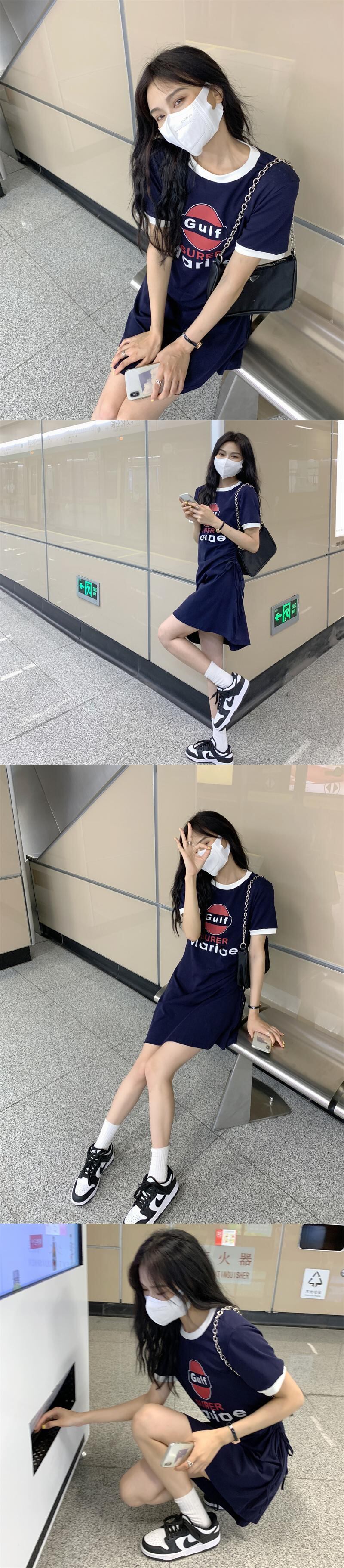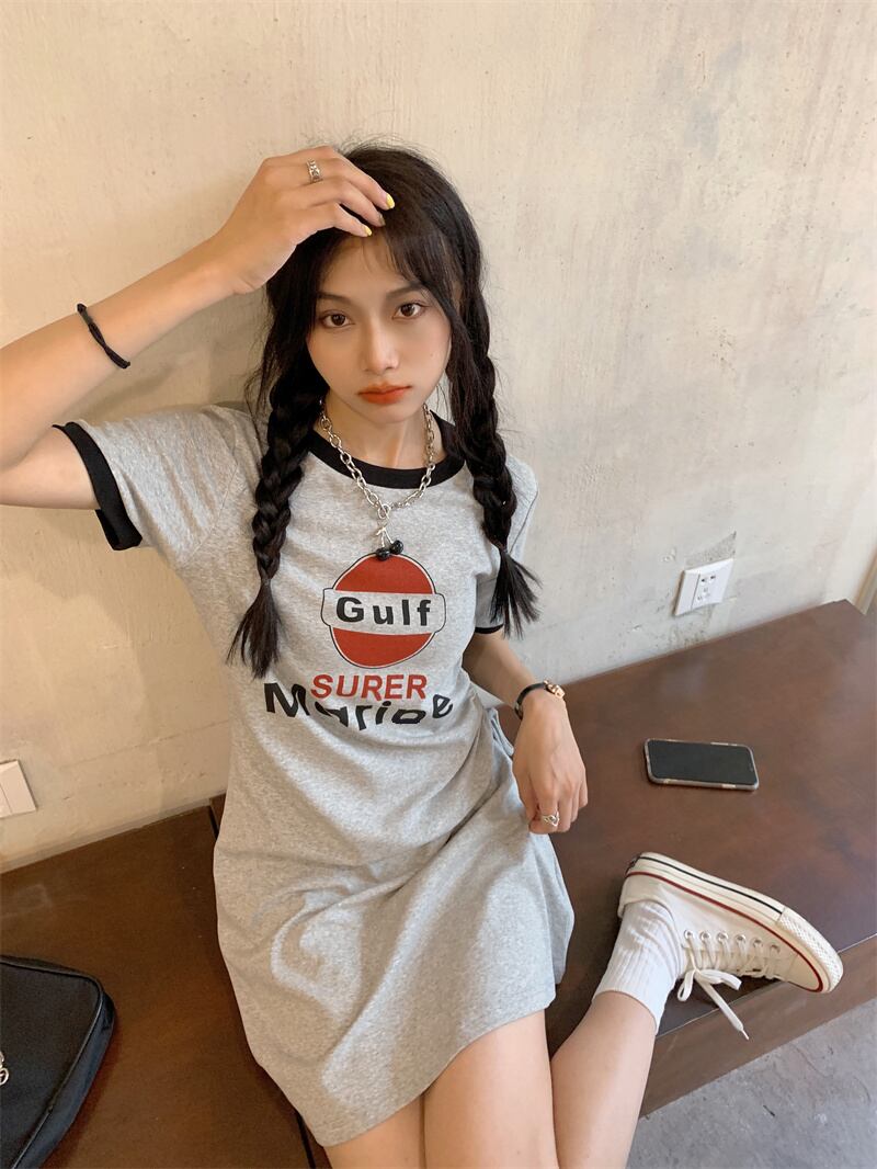 Tシャツ ドレス サマーギャザースリムフィットルーズハイウェストウェスト薄手Aラインスカート 夏物 クレセントシティ37899588352
