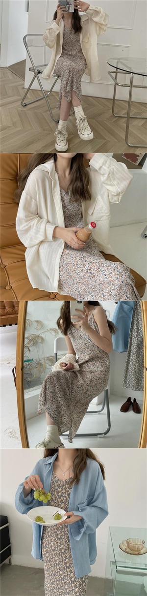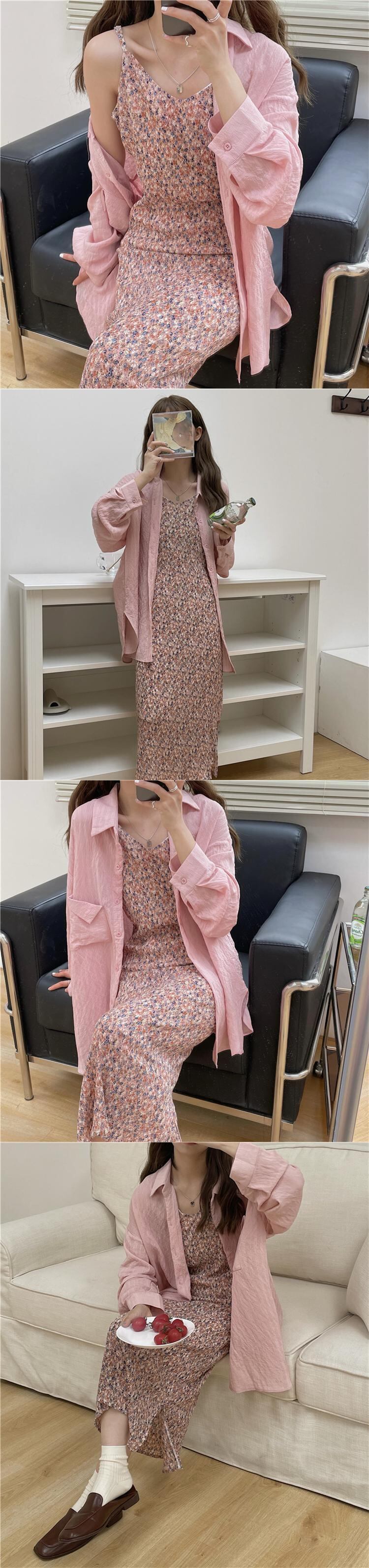 サマー薄手長袖スリーブシャツ フローラルドレス ツーピース セット ロング 大人ガーリー スウィート キュート カジュアル 夏物 花柄 クレセントシティ68076715061