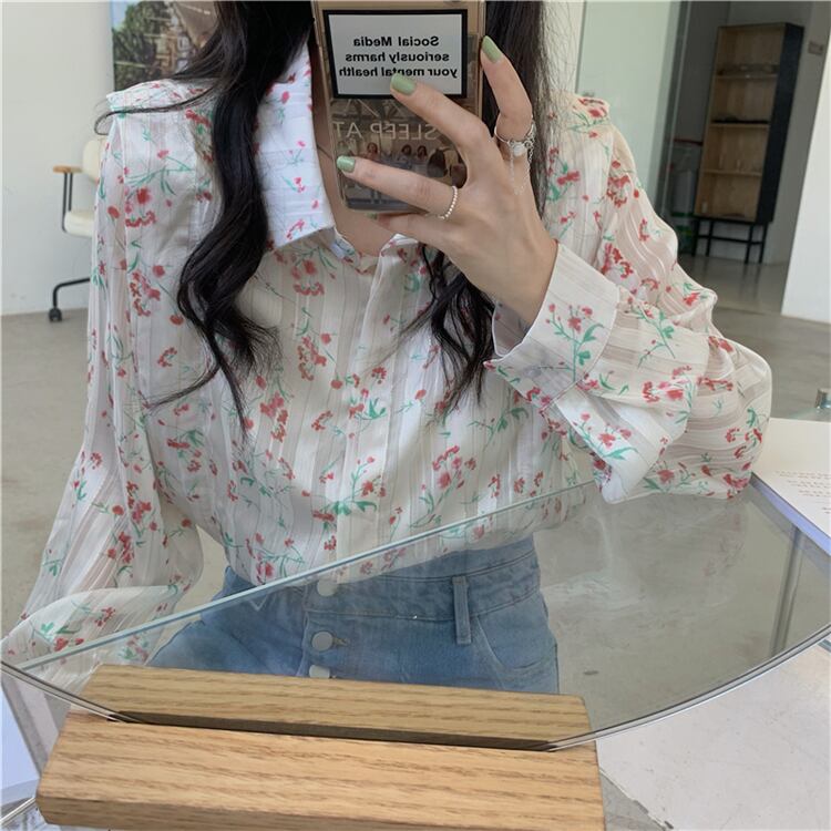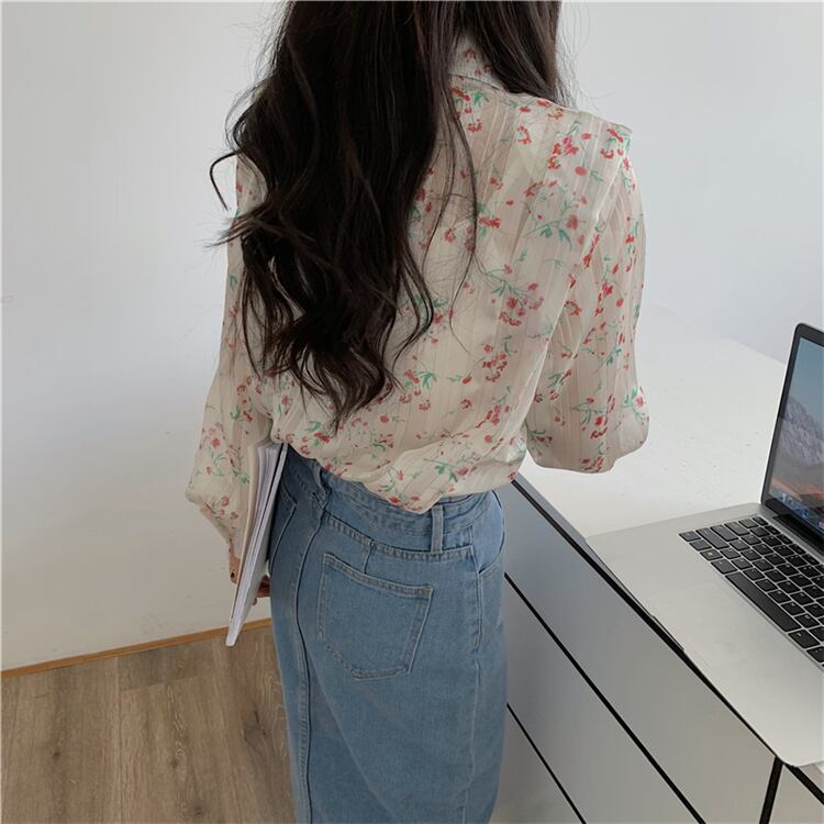 フローラルシャツ オータムルーズカジュアルトップス ロング 大人ガーリー スウィート キュート 秋物 花柄 クレセントシティ41683381393