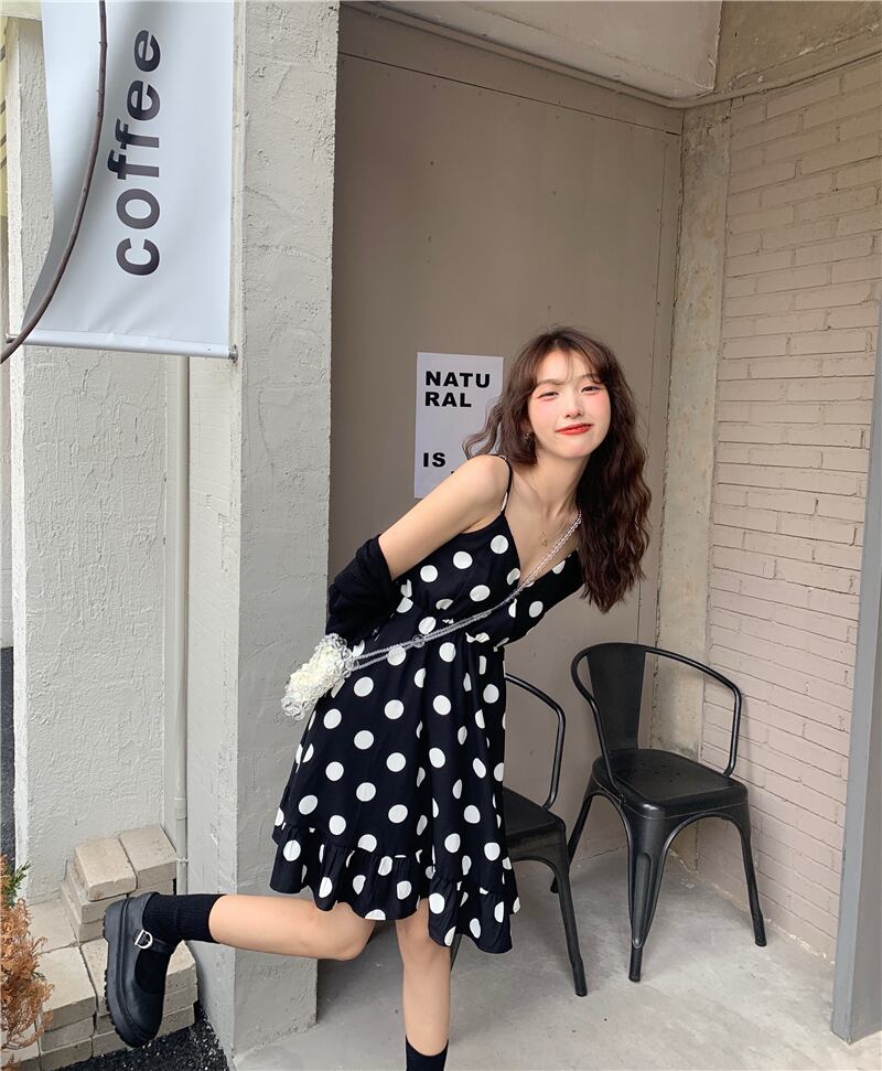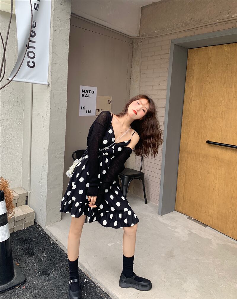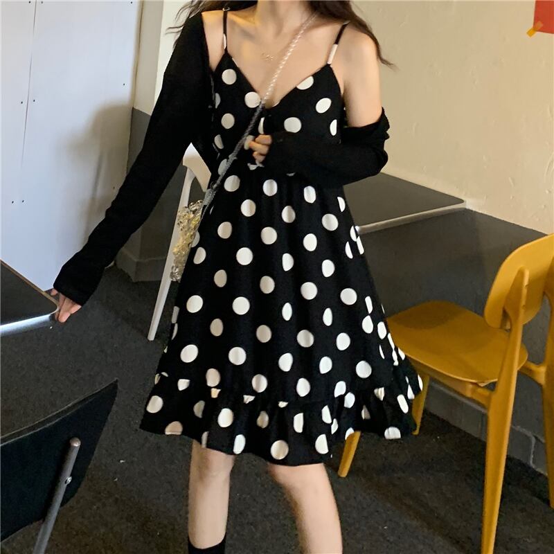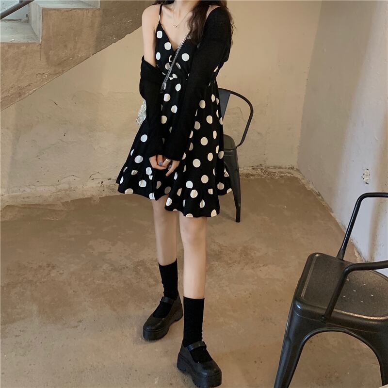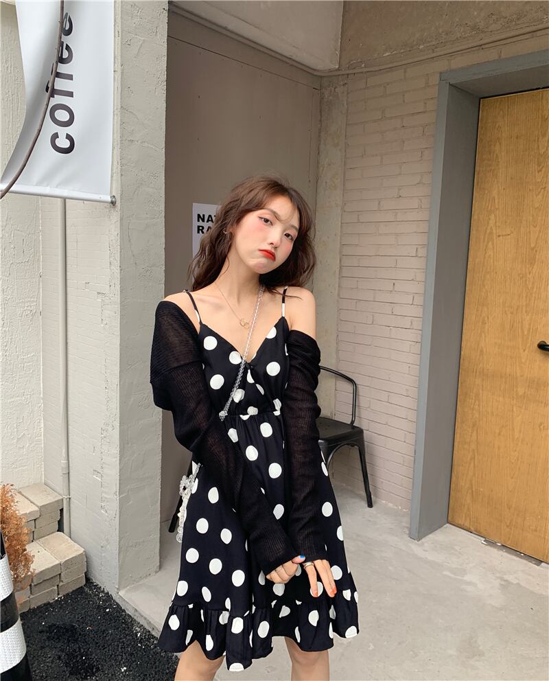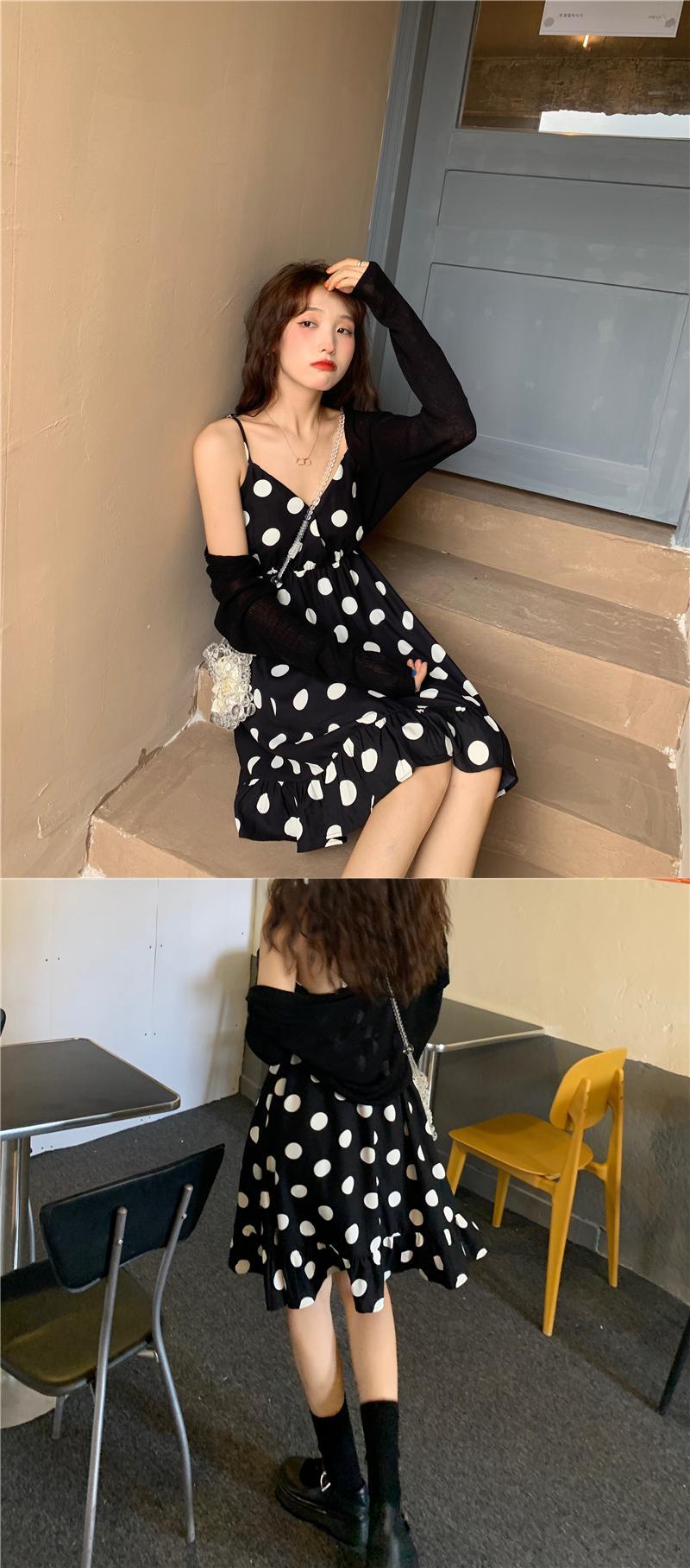 水玉ドレス サマーブラックウェストAラインスカート カーディガン 夏物 クレセントシティ35750212271