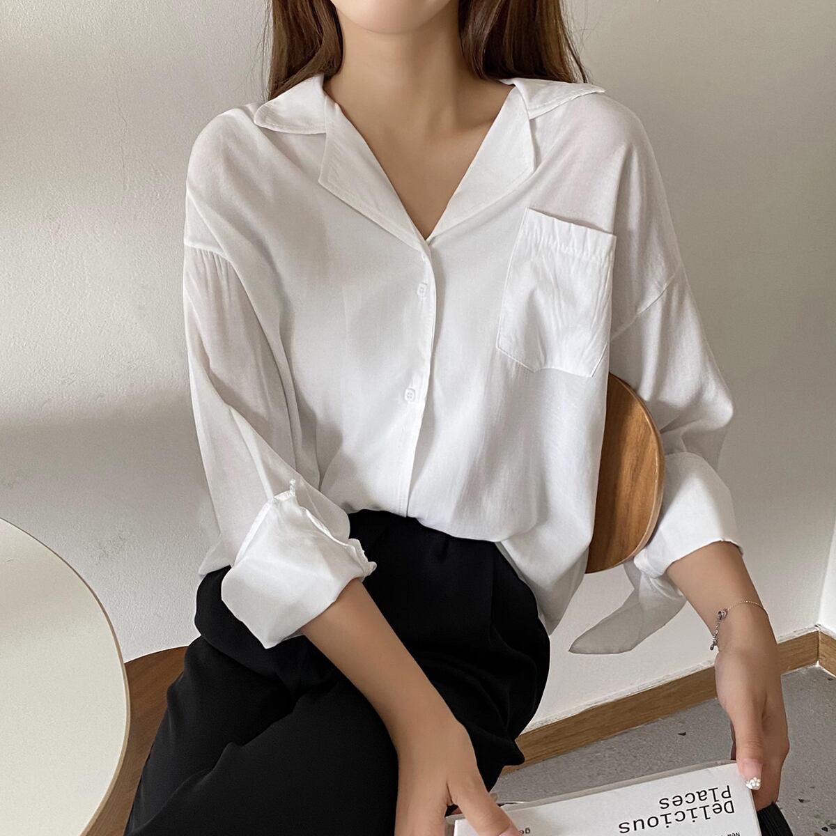 シャツ オータムスタンダードルーズカラー ロング レトロ 秋物 ピュア クレセントシティ81414437946