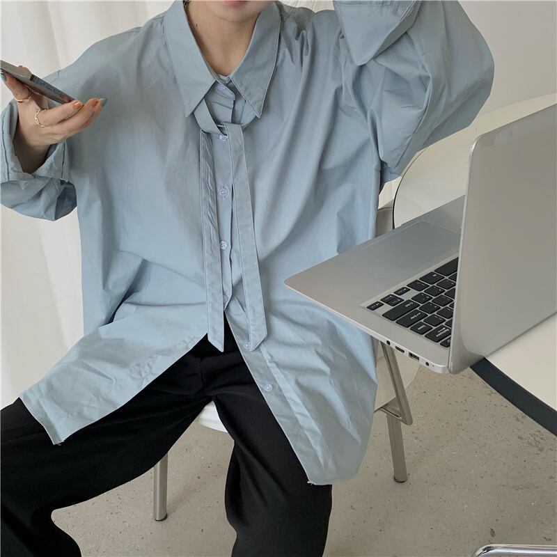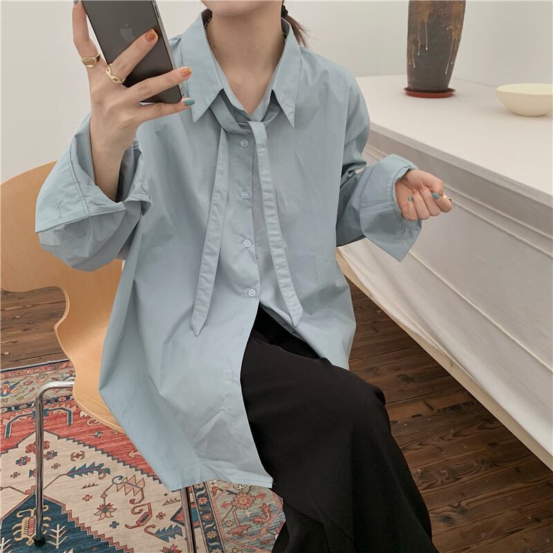 シャツ オータムカジュアルルーズソリッド カラー ロング 秋物 ソリッドカラー クレセントシティ27363224603