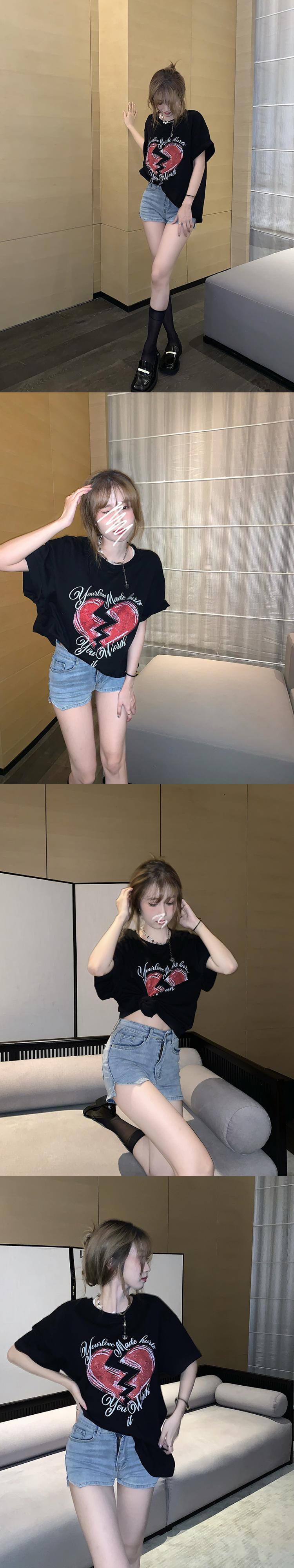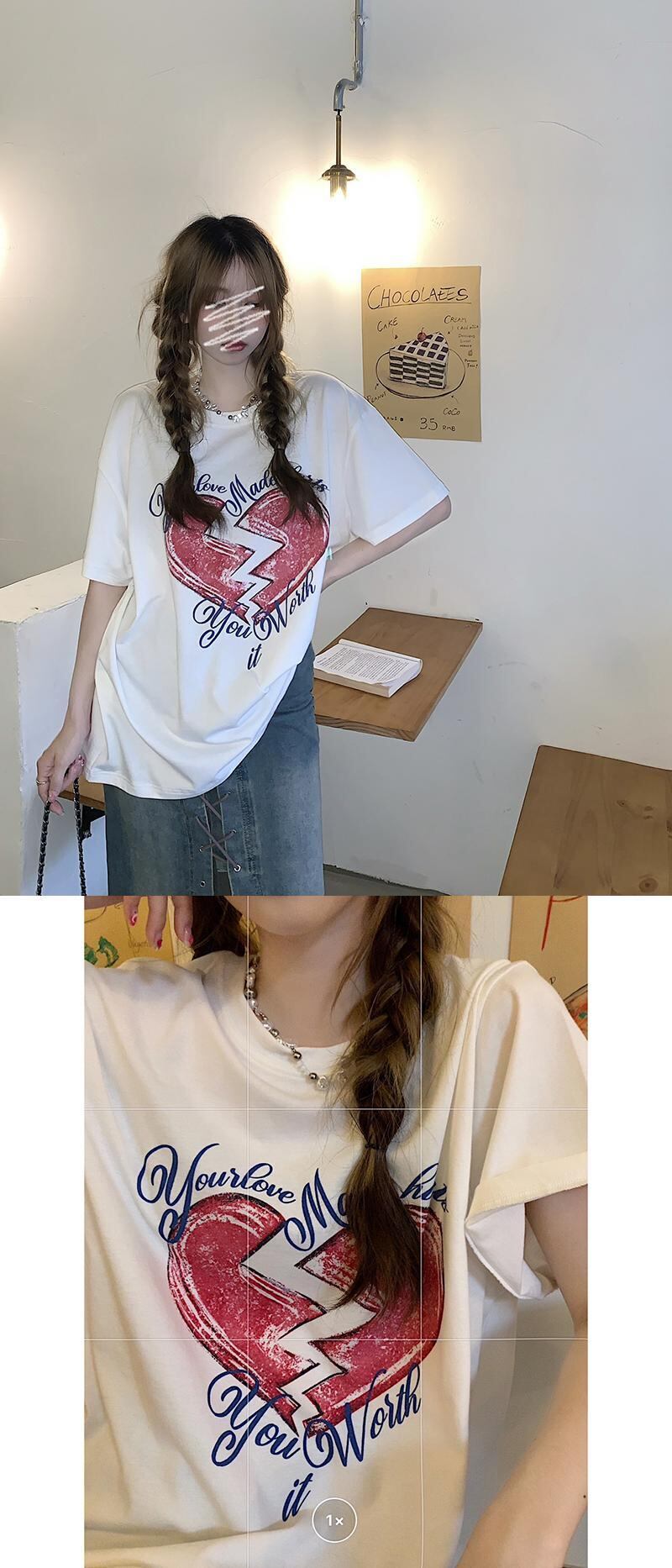 プリント柄Tシャツ サマーカジュアルルーズホワイトトップス 夏物 クレセントシティ75186255238