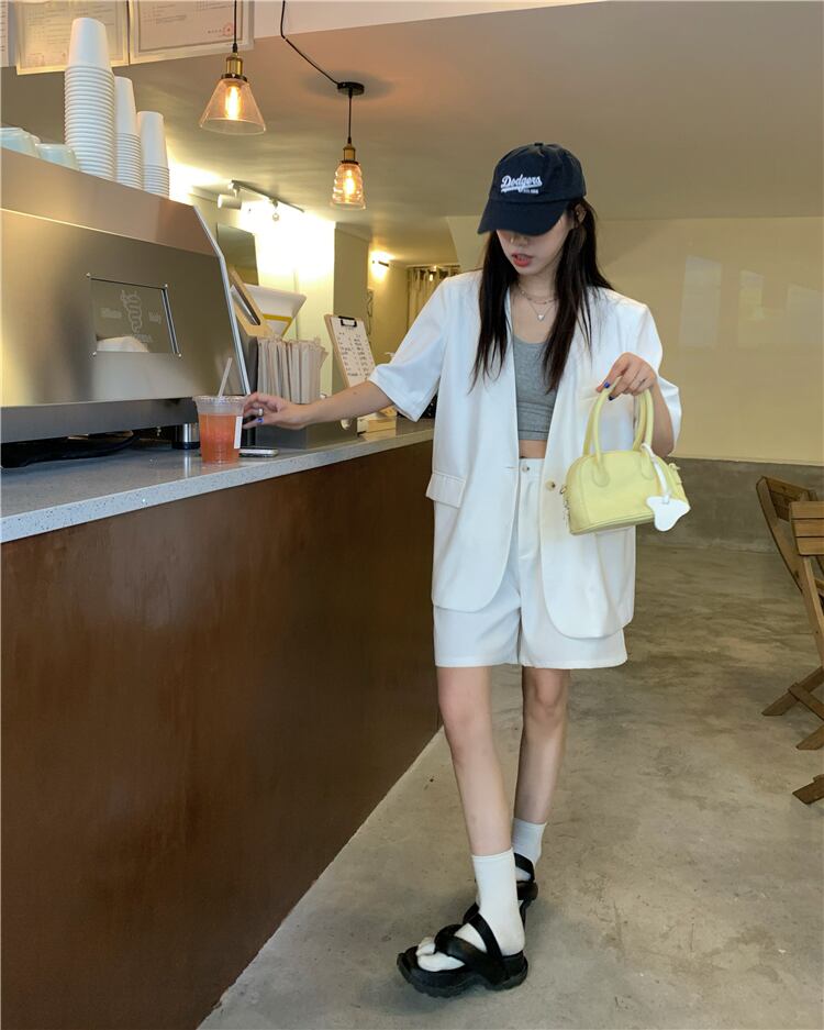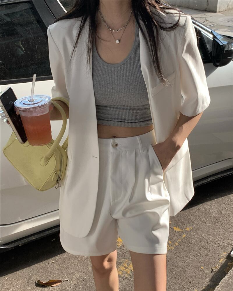 薄手ホワイトジャケット レディースサマーカジュアルルーズシャツ ショーツ 夏物 ブルマー クレセントシティ91117196868