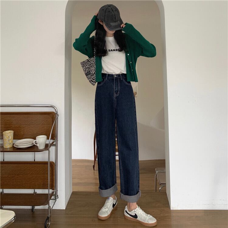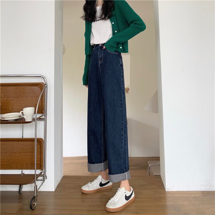 スタンダードルーズハイウェストウェストスリムジーンズ レディーススプリングカジュアルワイドレッグパンツ レトロ 春物 ワイドパンツ クレセントシティ28129368585