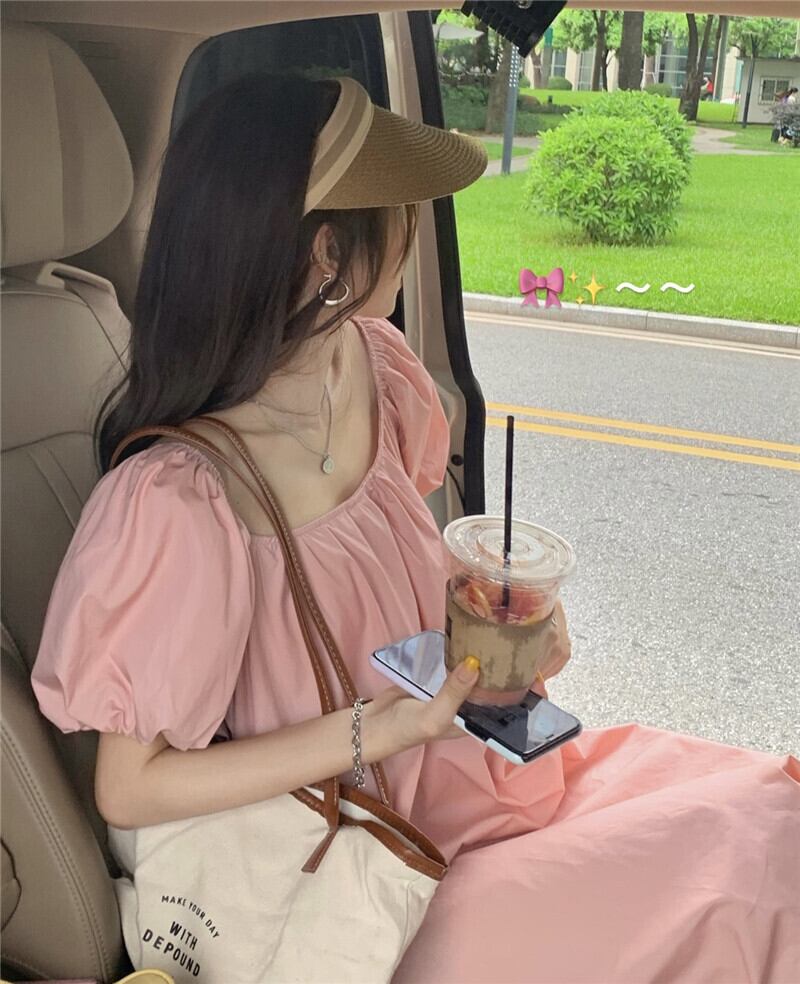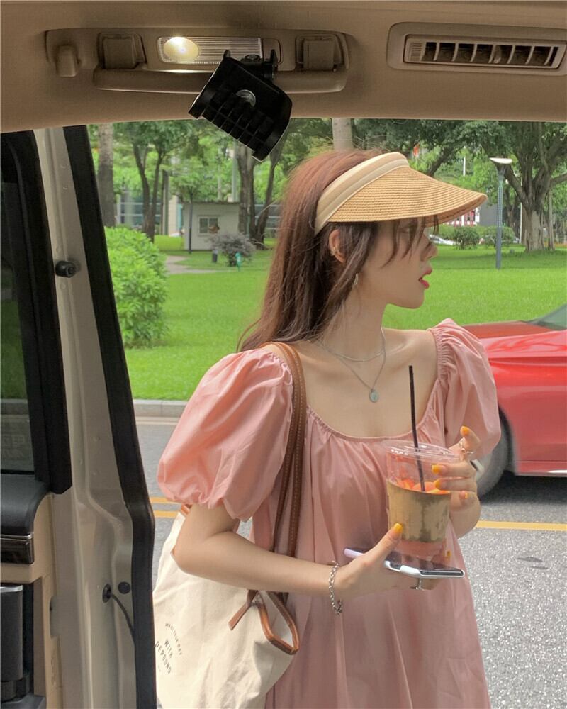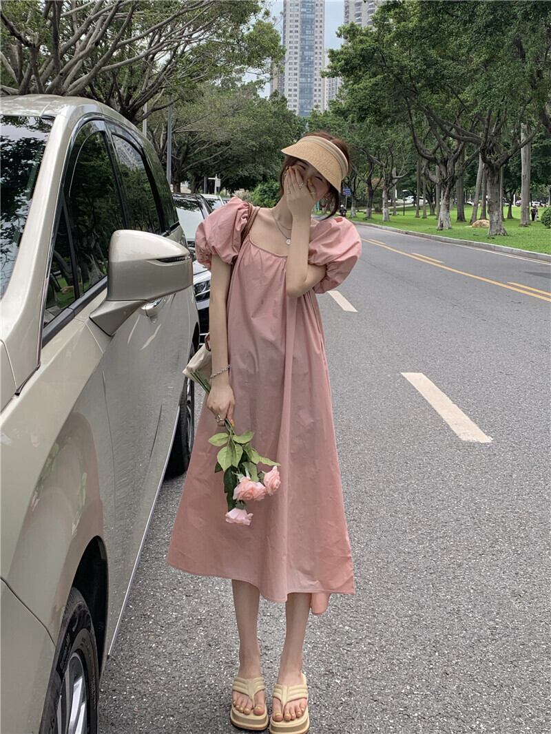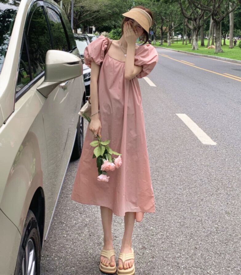 スリーブドレス サマールーズ薄手Aライン ピンク 夏物 クレセントシティ1023257477