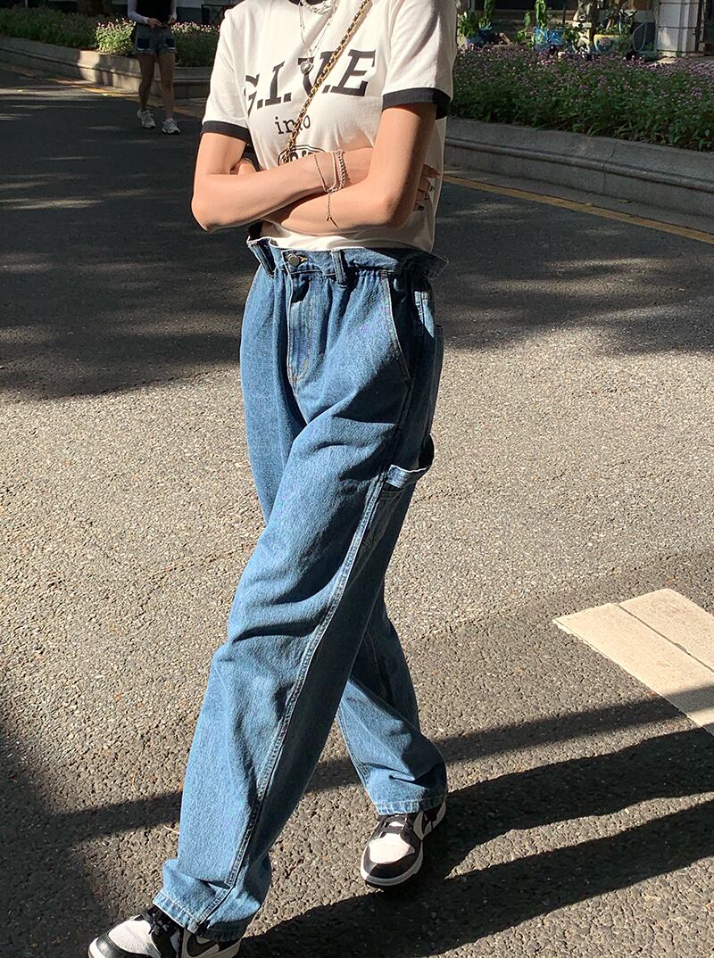 ハイウェストウェストジーンズ レディースサマースタイルルーズ薄手パンツ ワイドレッグ 夏物 ワイドパンツ クレセントシティ66482676704