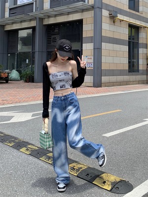 ジーンズ サマースタイルルーズハイウェストパンツ ワイドレッグ 夏物 ワイドパンツ クレセントシティ82748085690