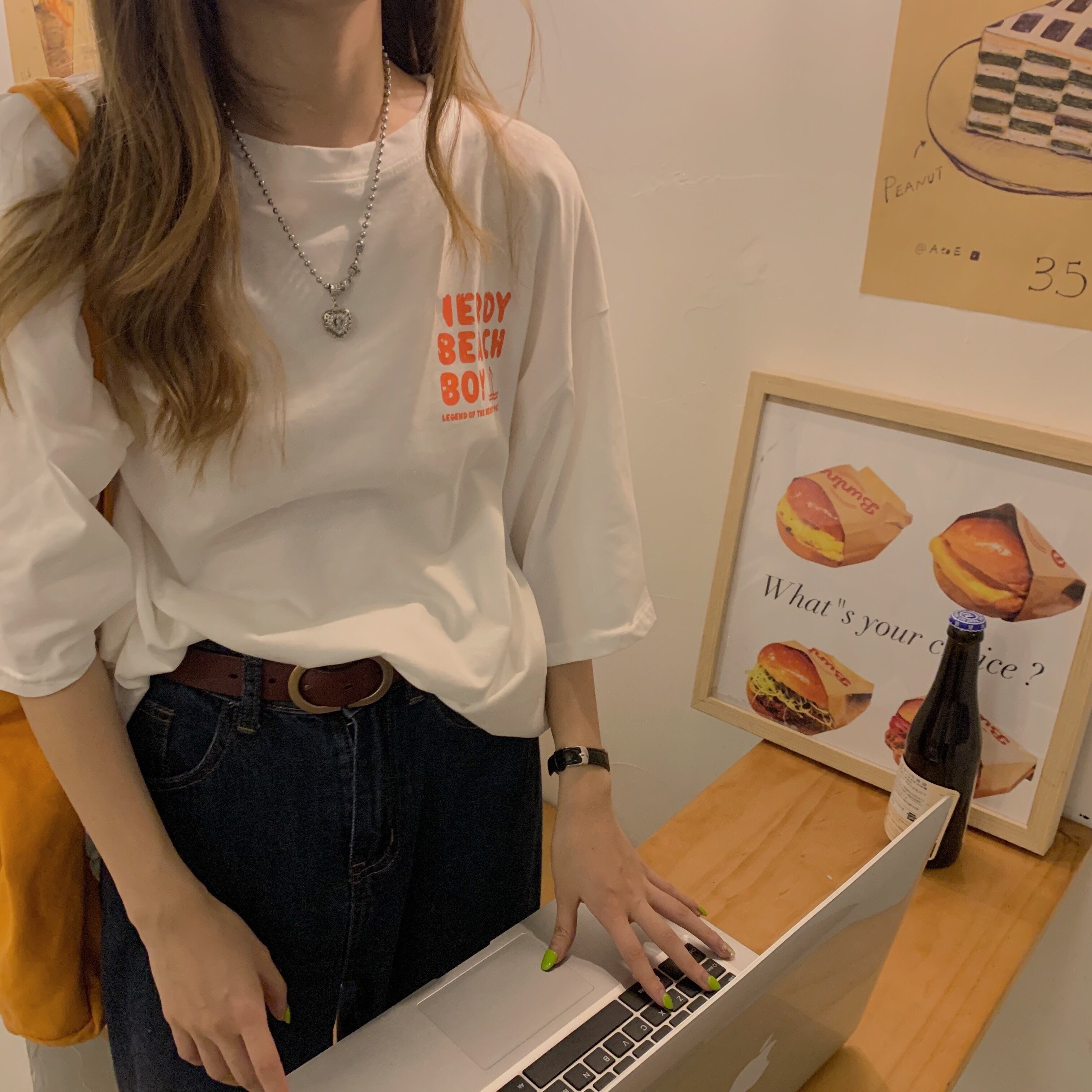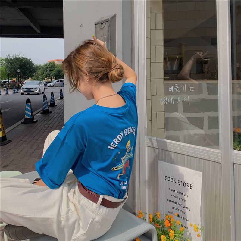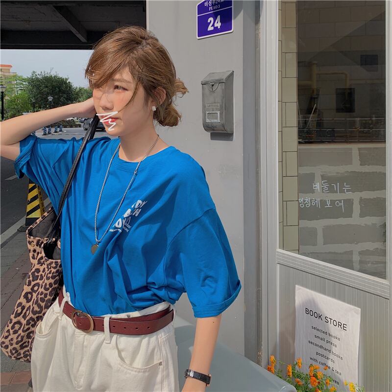 プリントTシャツ サマーカジュアルルーズブルートップス 夏物 クレセントシティ77280426284