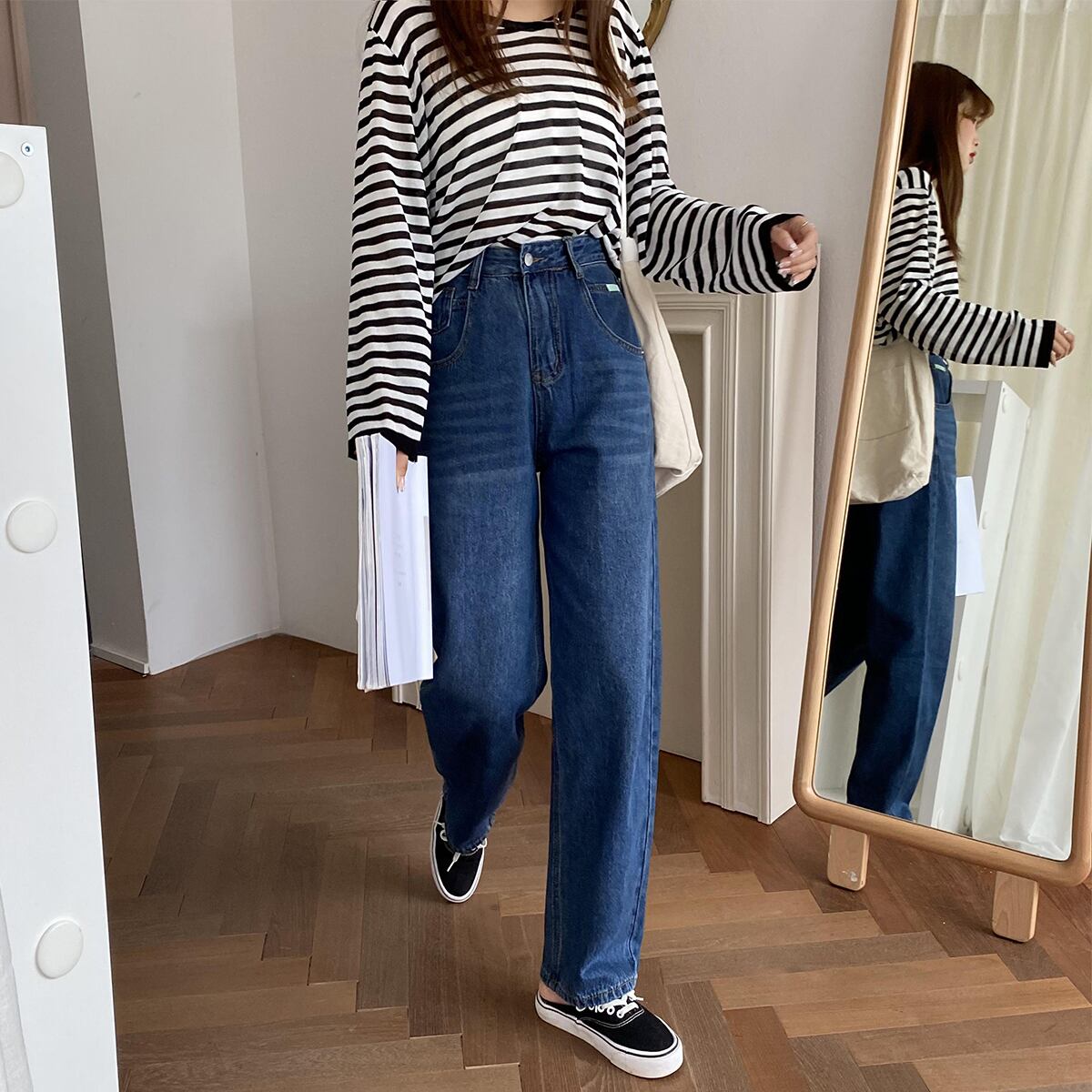 ジーンズ レディースサマースタンダードワイドレッグルーズウェストパンツ レトロ 夏物 ワイドパンツ クレセントシティ26978116945