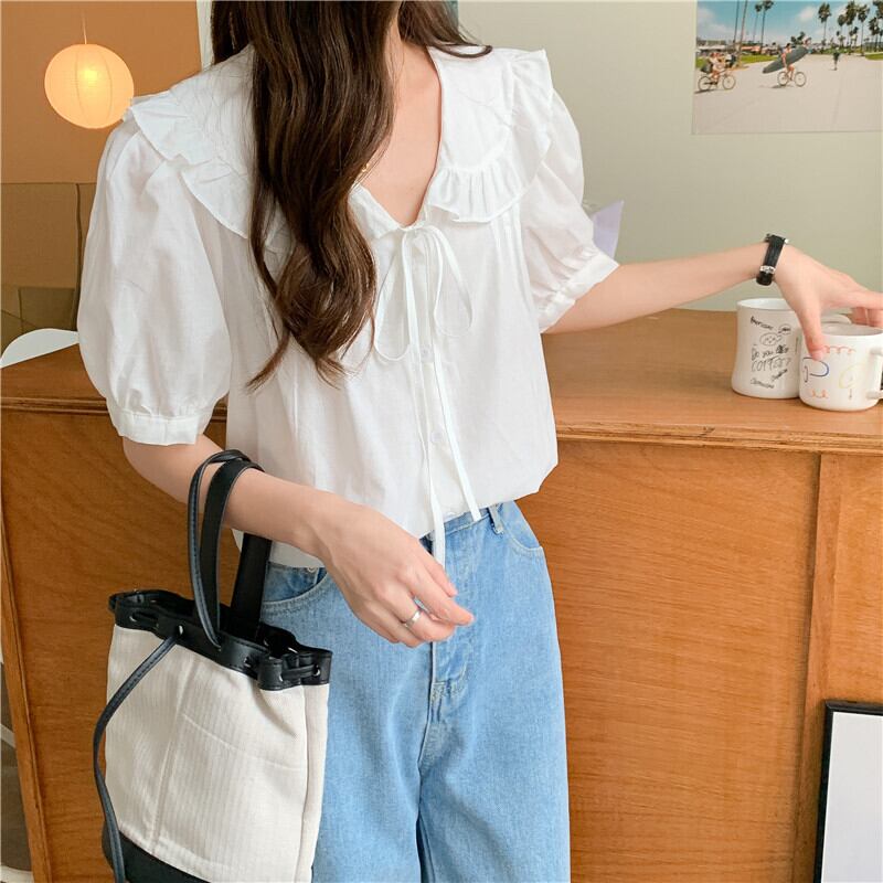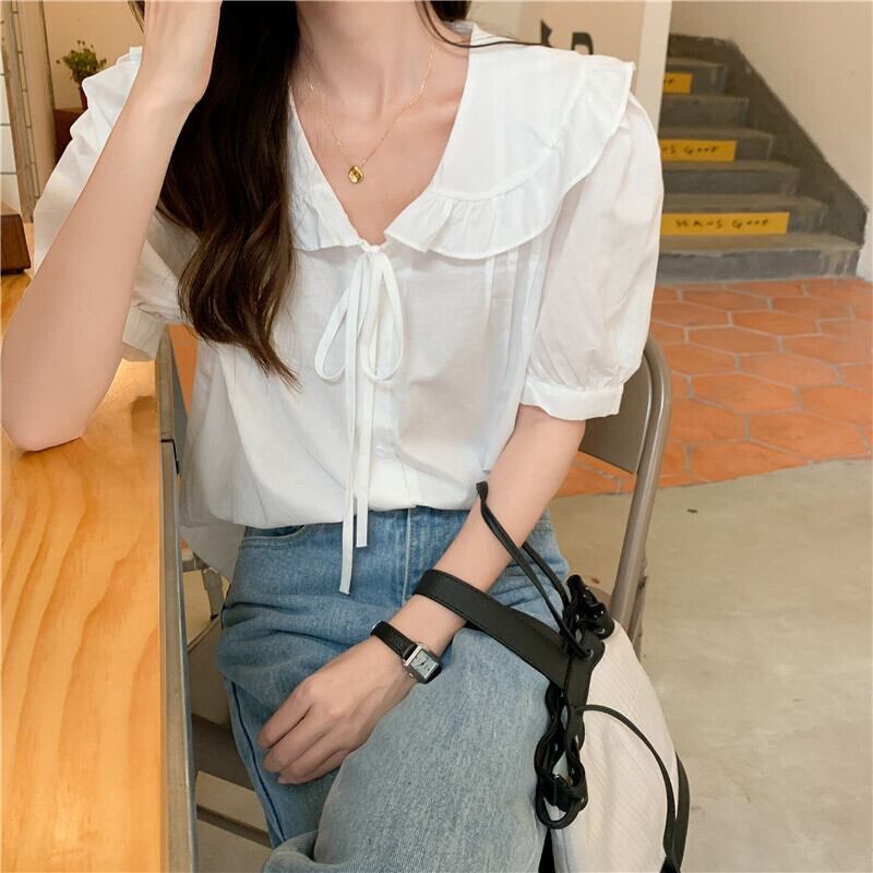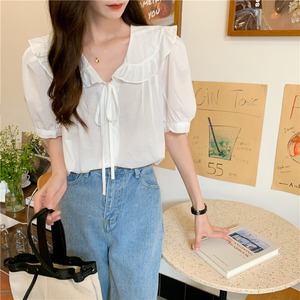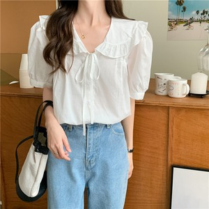 カラーシャツ サマールーズ薄手ホワイト 大人ガーリー スウィート キュート カジュアル 夏物 クレセントシティ46923475823