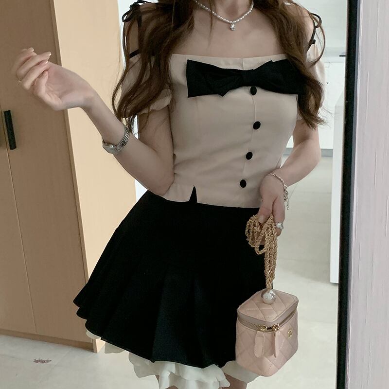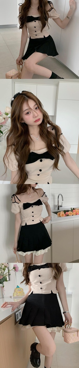リボンショートトップス サマーレースプリーツAラインスカート 夏物 クレセントシティ35499243419