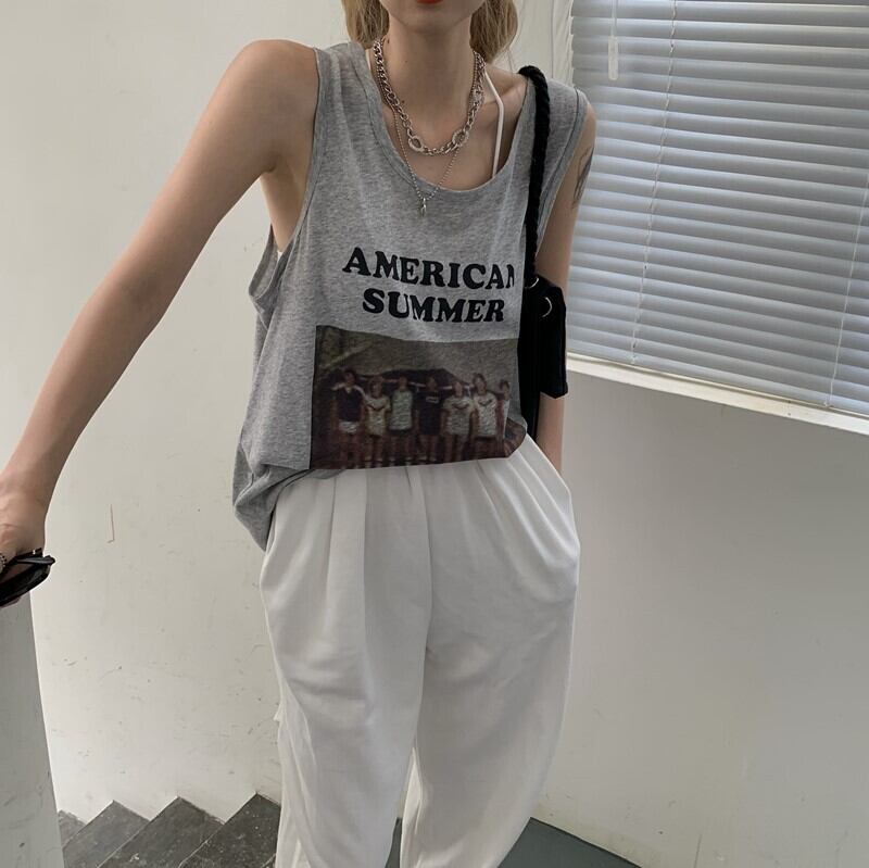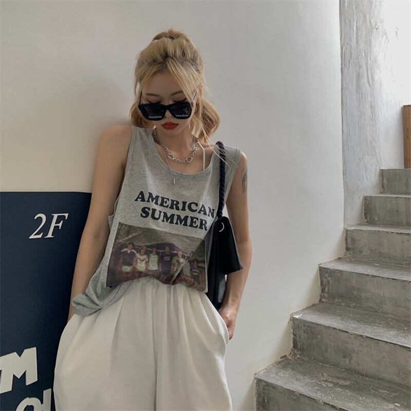 ノースリーブTシャツ サマールーズ薄手カジュアルプリントトップス 夏物 クレセントシティ31703101841