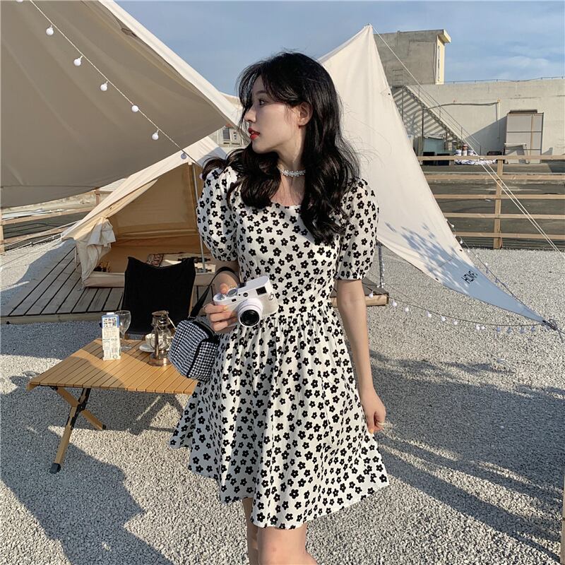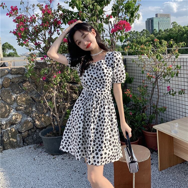 スリーブフローラルドレス サマーホルターウェストAラインスカート 大人ガーリー スウィート キュート カジュアル 夏物 花柄 クレセントシティ87016304122
