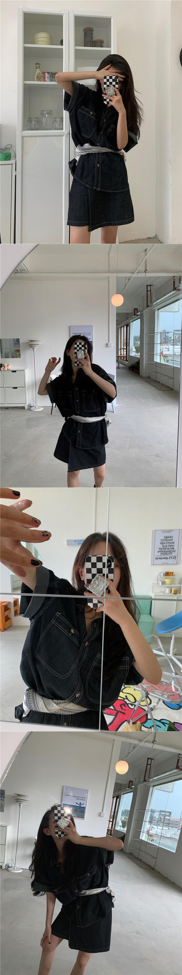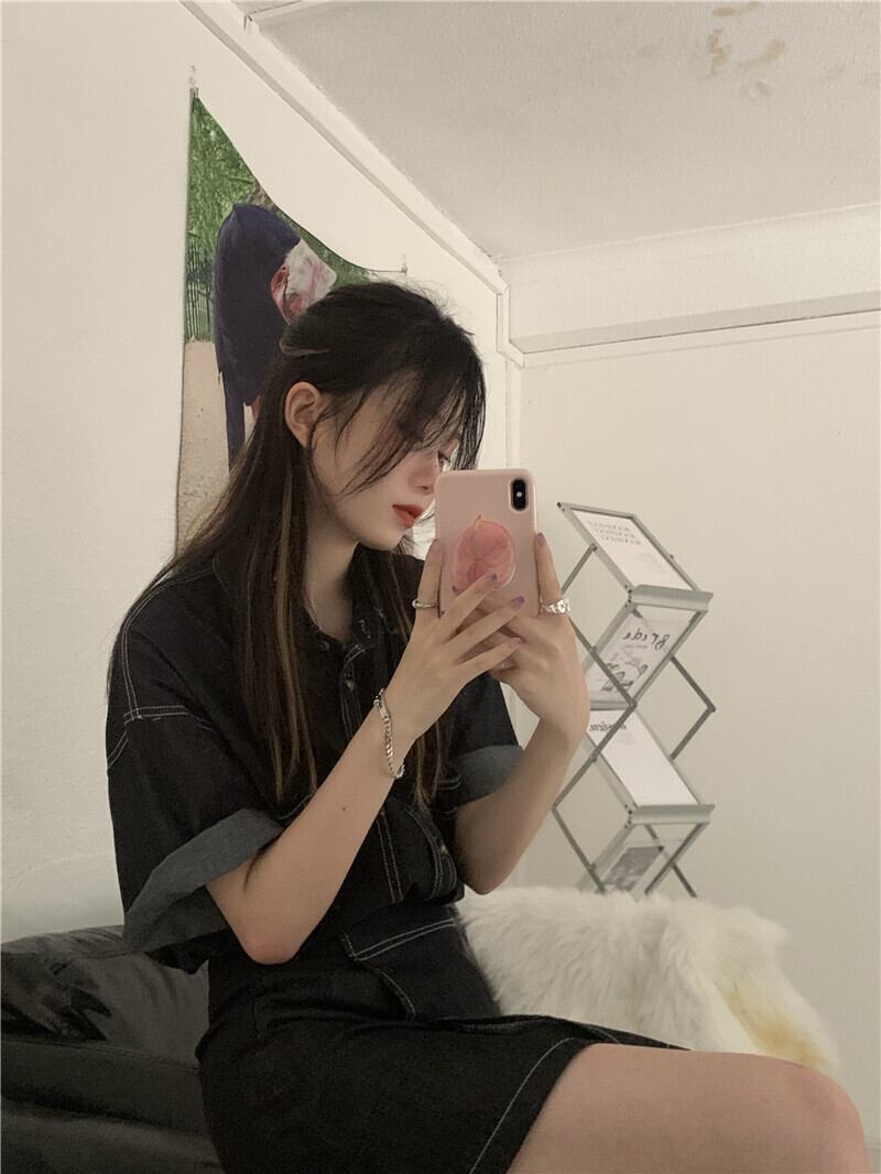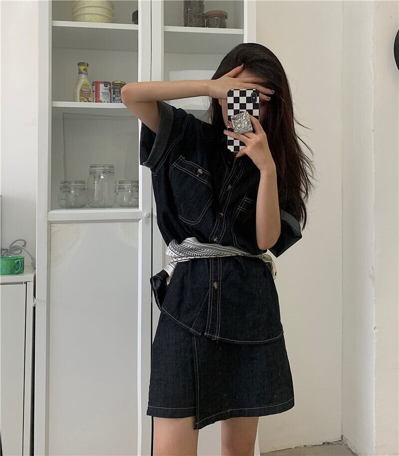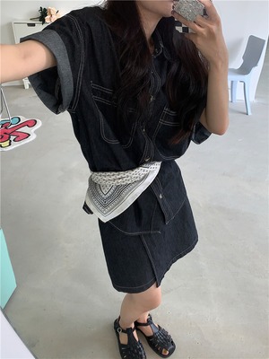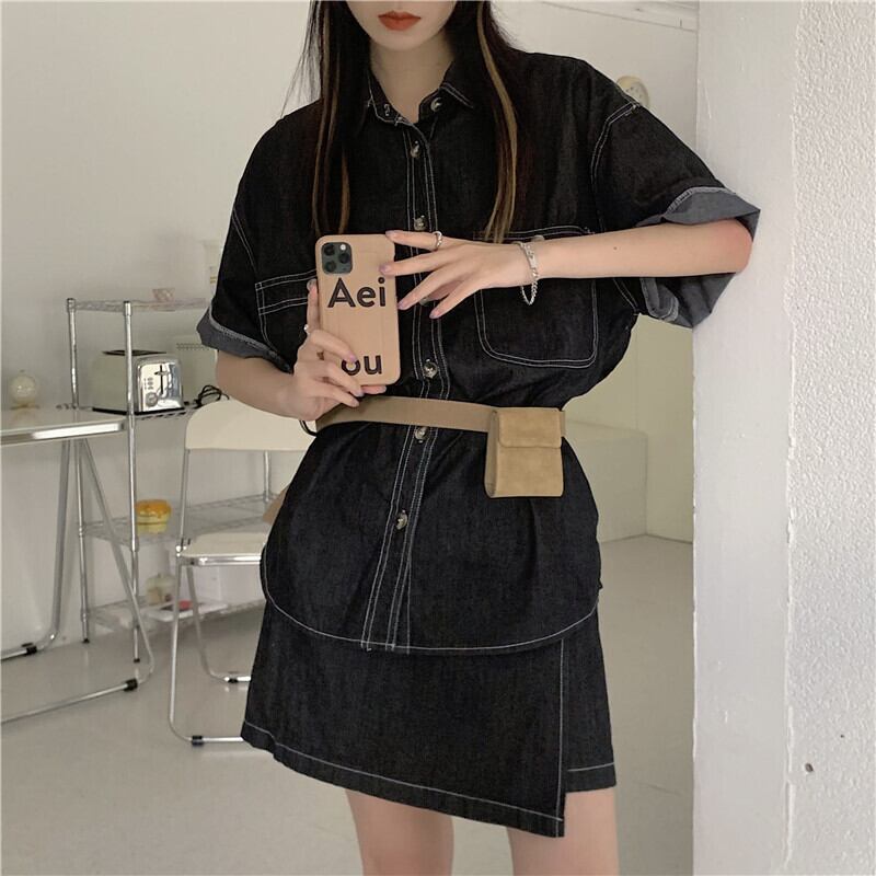 サマーハイウェストウェストスリムショートスカート スタンダードラインルーズシャツ レトロ 夏物 クレセントシティ70602663675