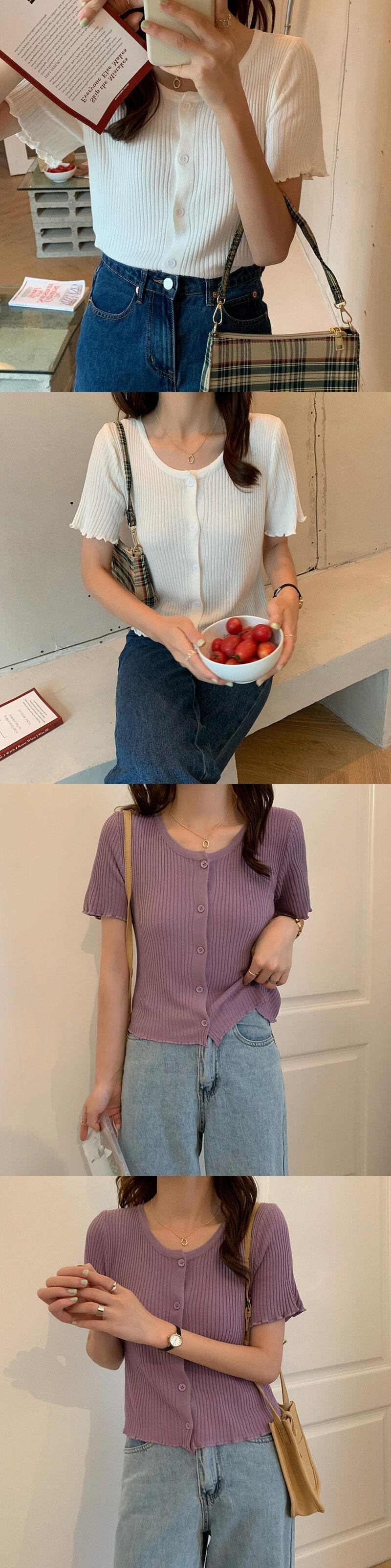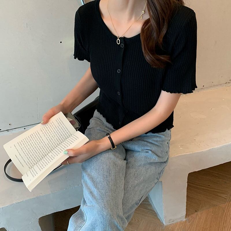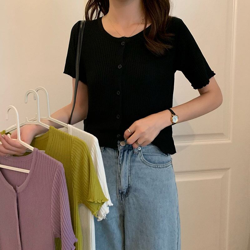 ショートニットカーディガンサマーソリッド カラースリムトップス 夏物 ソリッドカラー クレセントシティ78601871517