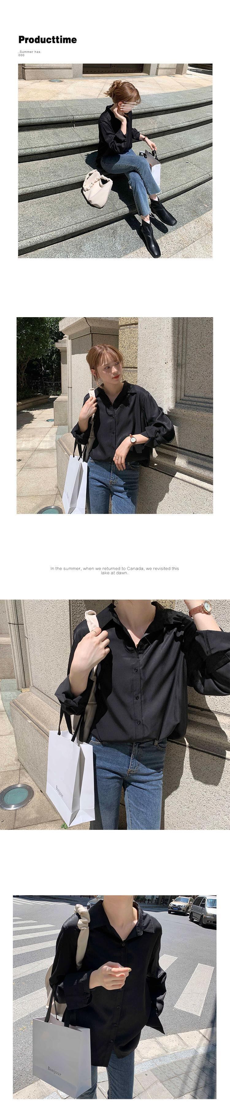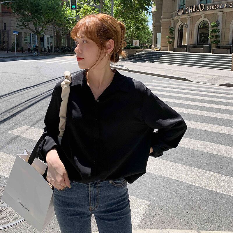 ブラックシャツ レディースサマーカジュアルルーズ薄手 ロング 夏物 クレセントシティ66698081296
