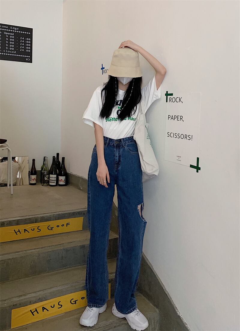 ジーンズ サマー薄手ルーズパンツ スタンダードハイウェスト レトロ 夏物 クレセントシティ97039293392