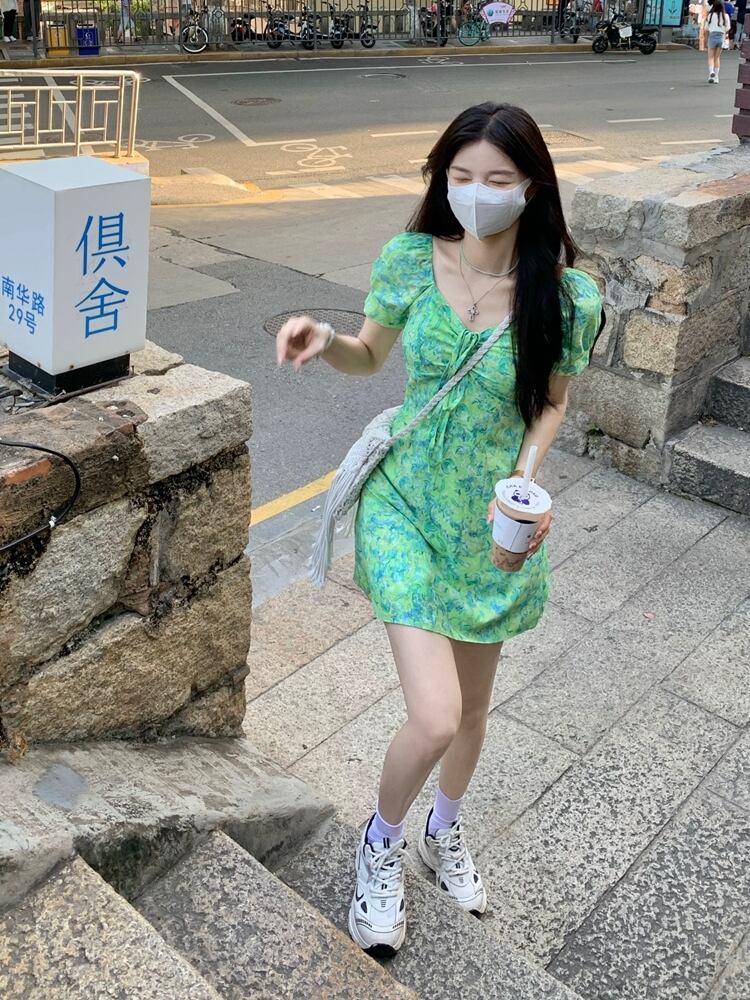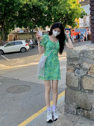 フローラルドレス サマーカラーウェスト薄手Aラインスカート 夏物 花柄 スクウェア クレセントシティ28177126525