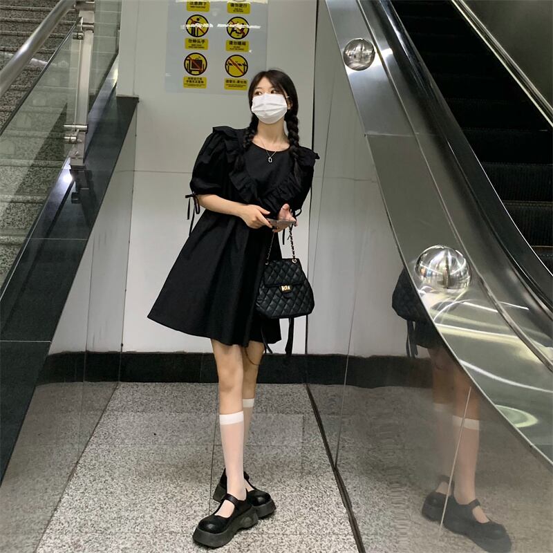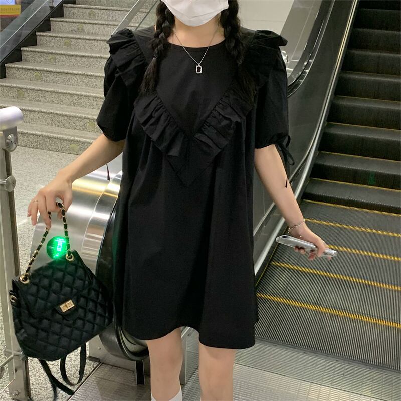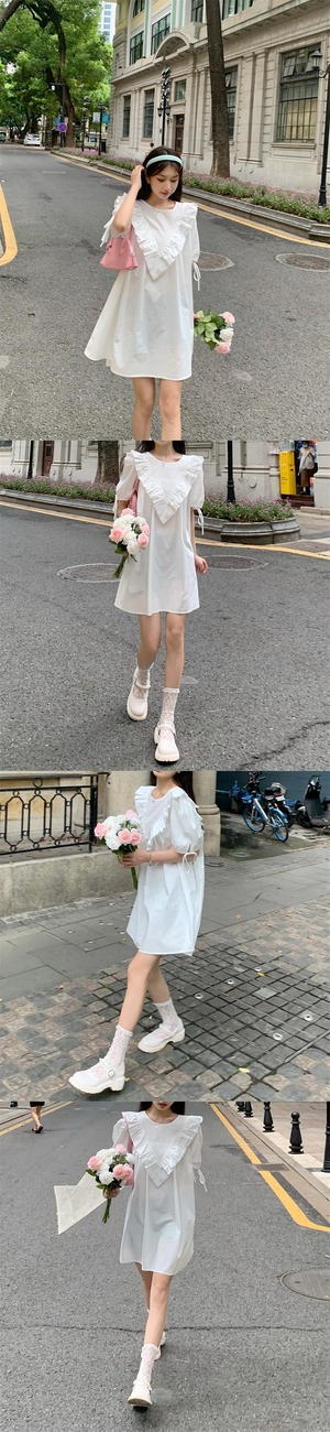 スリーブドレス サマーカラールーズ薄手ホワイトAラインスカート 大人ガーリー スウィート キュート カジュアル 夏物 クレセントシティ28996073140
