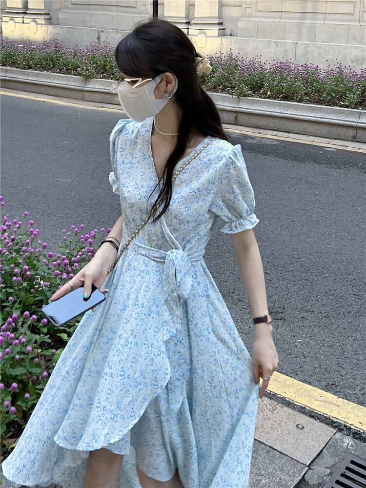 フローラルドレス サマーVネックウェストAライン 大人ガーリー スウィート キュート カジュアル 夏物 花柄 クレセントシティ12465603598