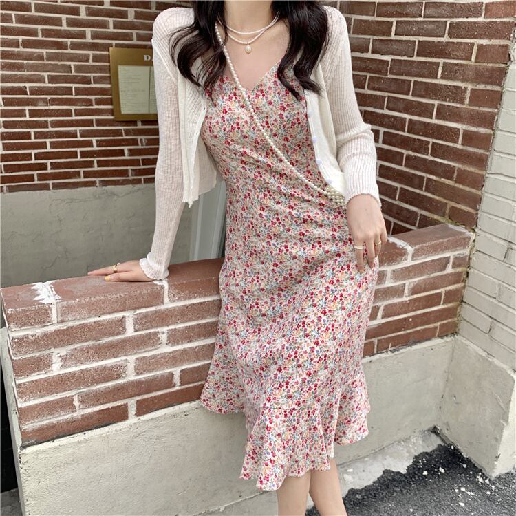 フローラルスカート サマーウェスト薄手AラインVネックシフォンドレス 夏物 花柄 クレセントシティ27149377530