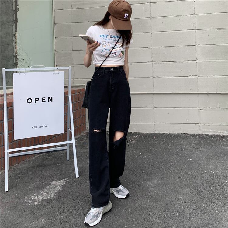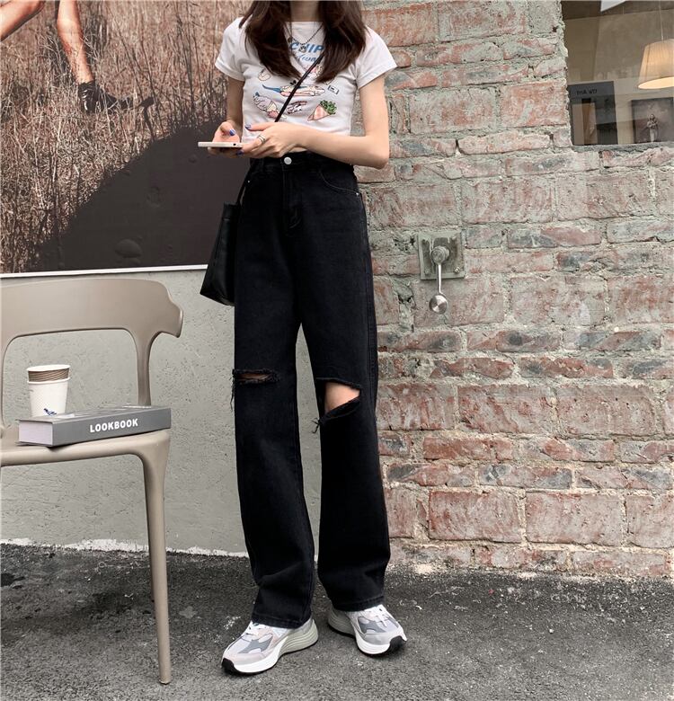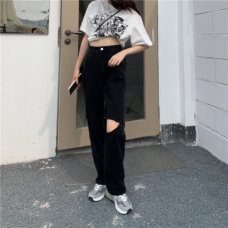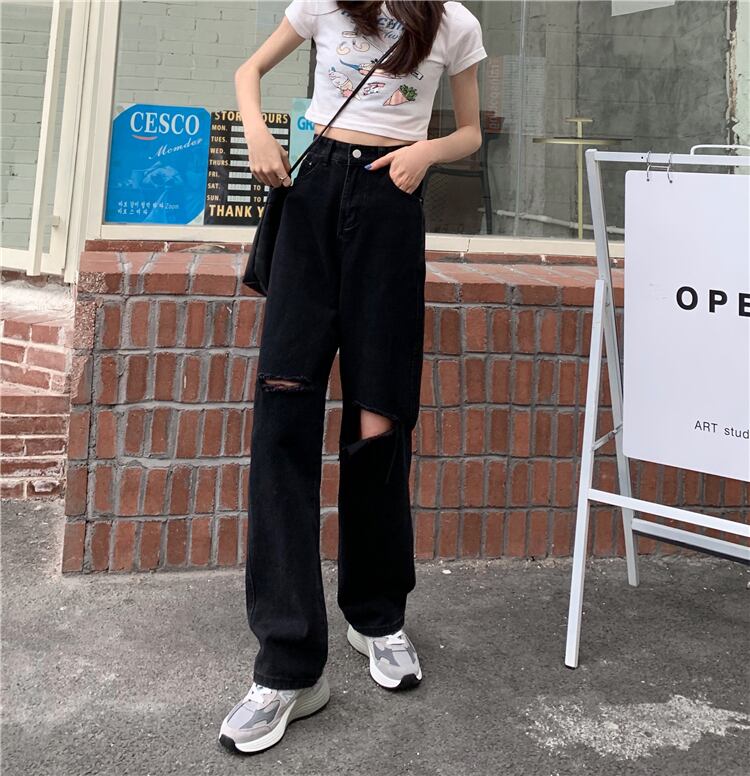 ブラックジーンズ サマー薄手ハイウェストパンツ 夏物 クレセントシティ76852523474