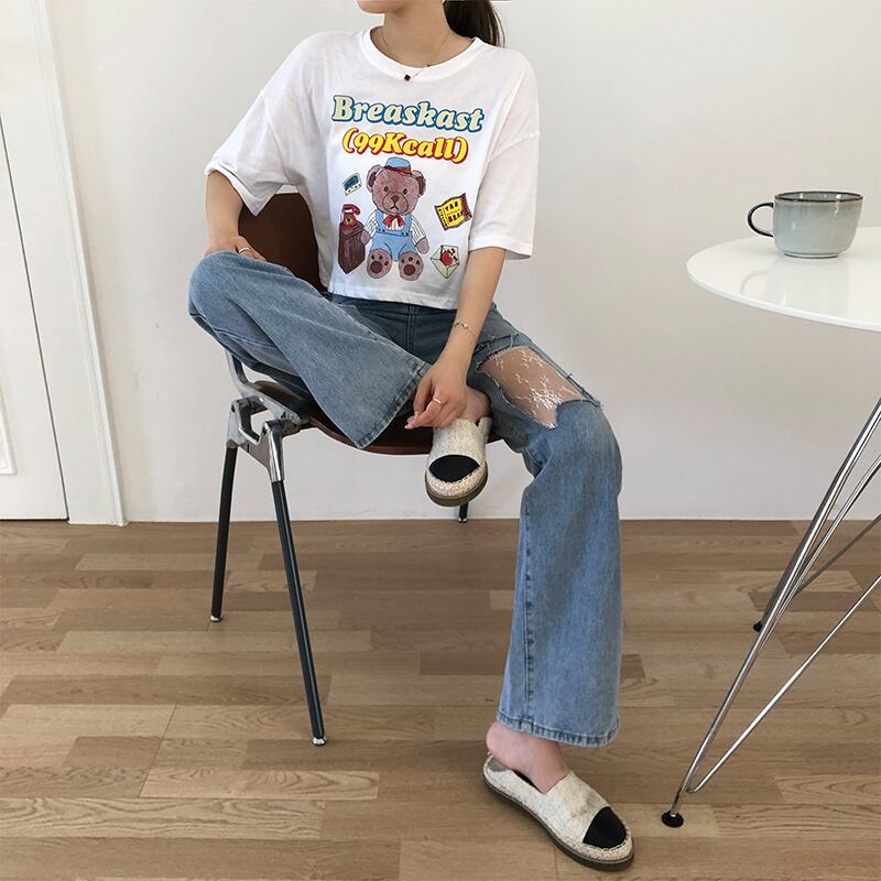 プリント柄半袖スリーブTシャツ レディースサマールーズラウンドネックトップス ショート ハーフスリーブ 夏物 Oネック クレセントシティ14411606800