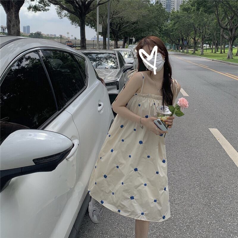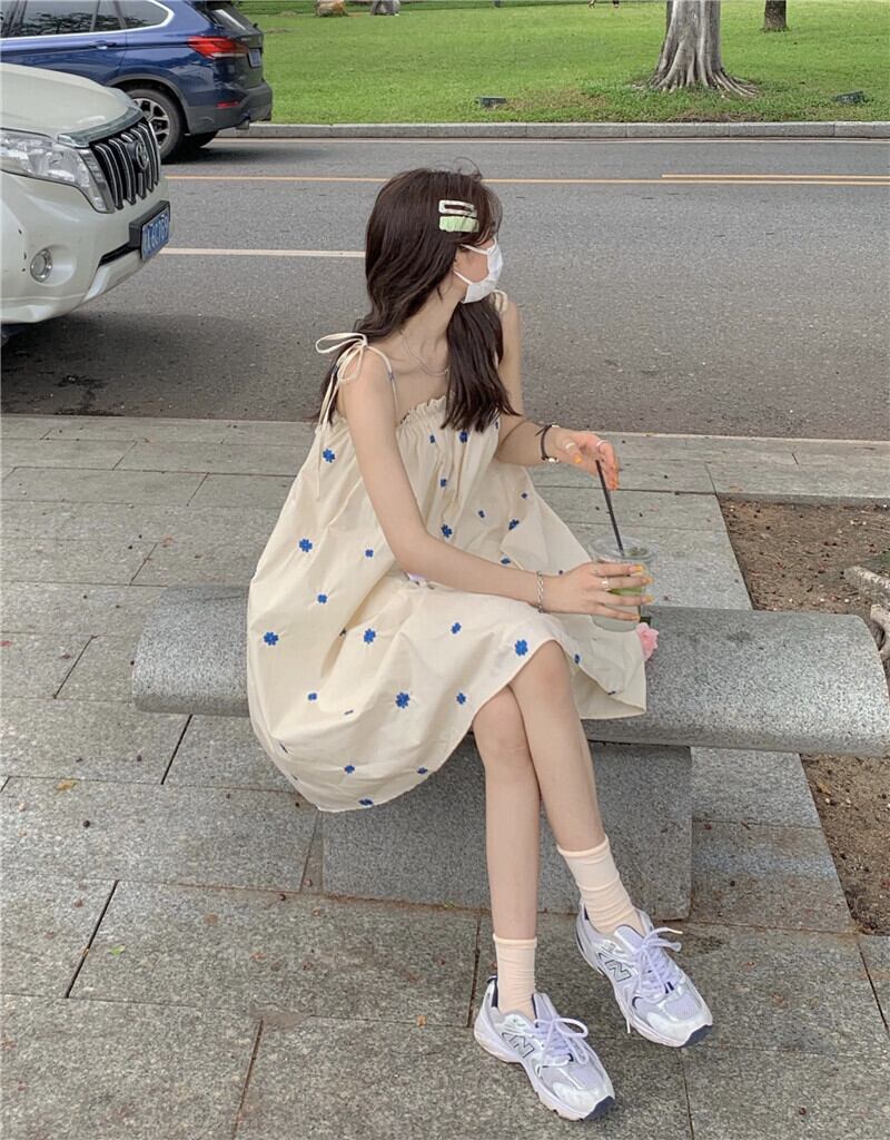 Flowerデザイン ドレス サマールーズ薄手Aラインスカート レッド 刺繍 大人ガーリー スウィート キュート カジュアル 夏物 フラワーデザイン クレセントシティ57677730127