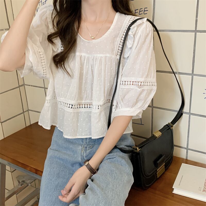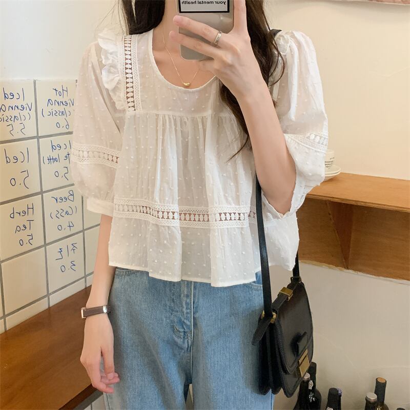 ホワイトシャツ サマールーズスタイルトップス 大人ガーリー スウィート キュート カジュアル 夏物 クレセントシティ26773809867