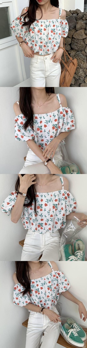 フローラルスリーブシャツ ルーズショートトップス 大人ガーリー スウィート キュート カジュアル 花柄 クレセントシティ49169782149