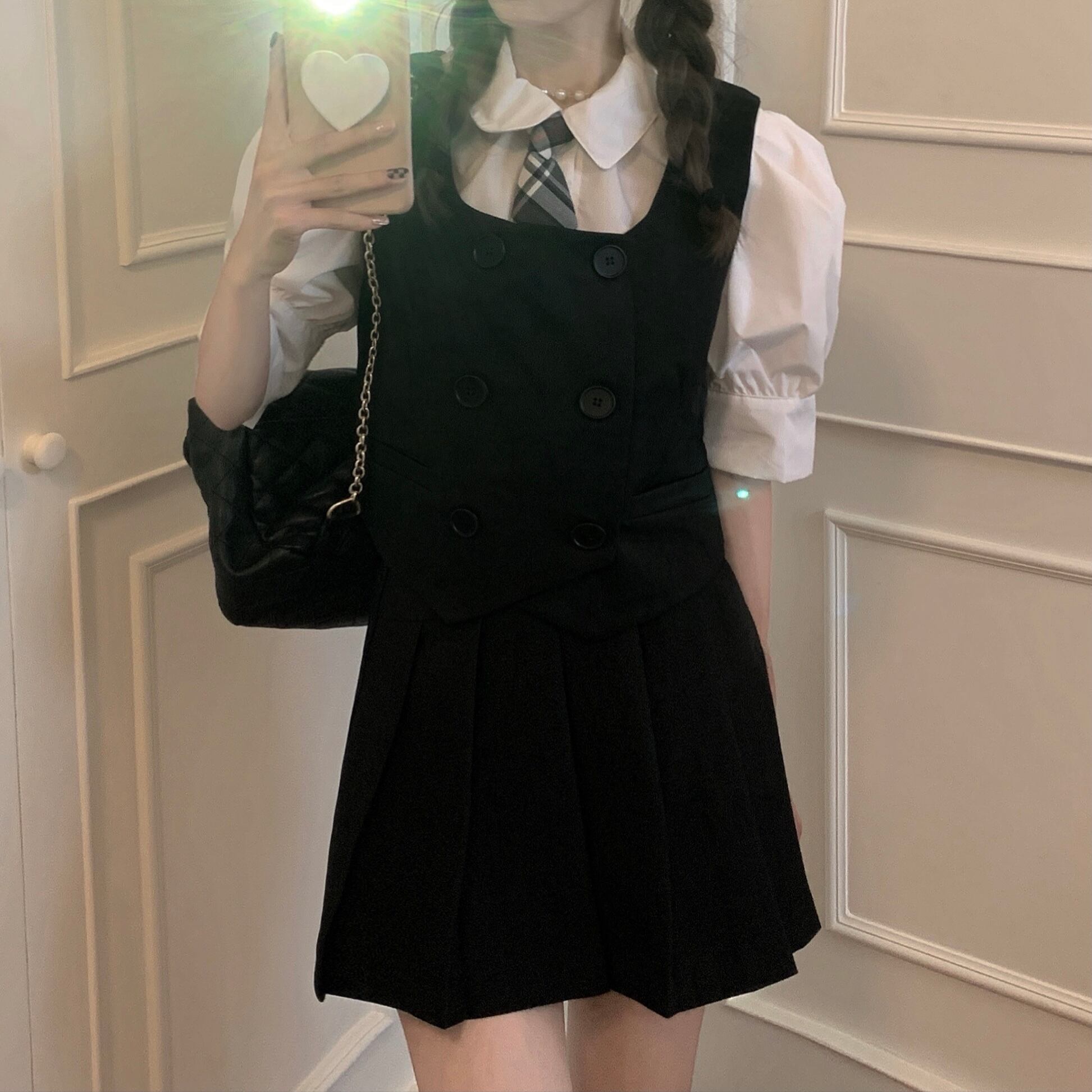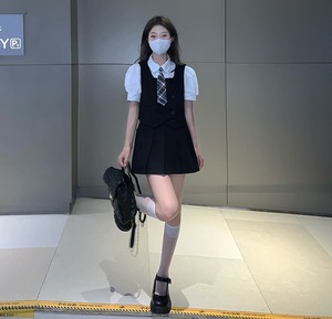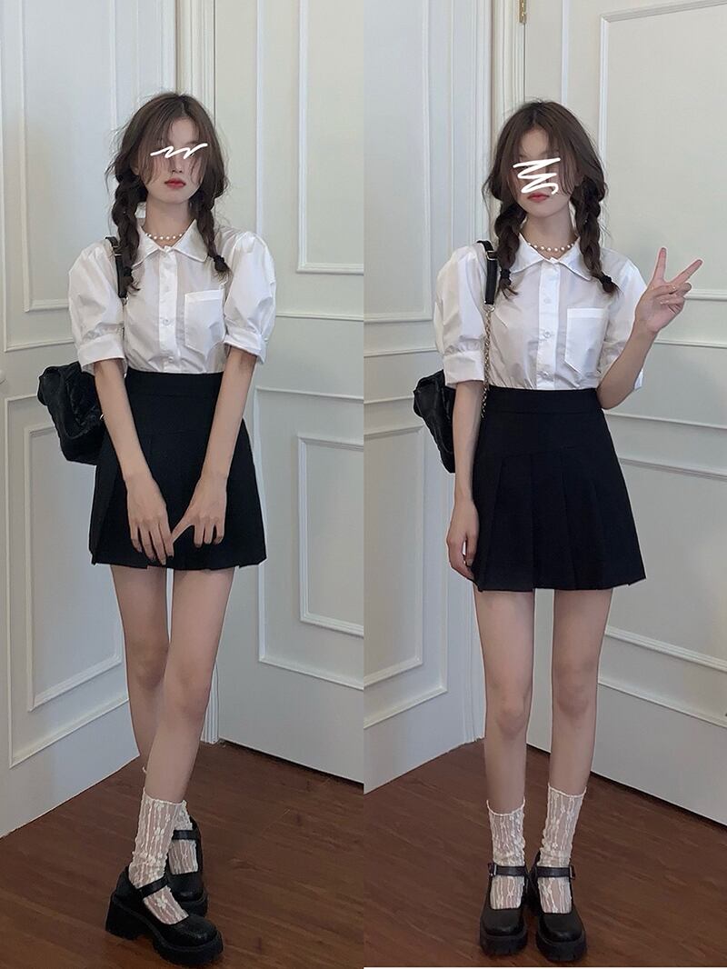 スタイルスカート スリーブシャツ ブラックハイウェストウェスト薄手プリーツ クレセントシティ71247522255