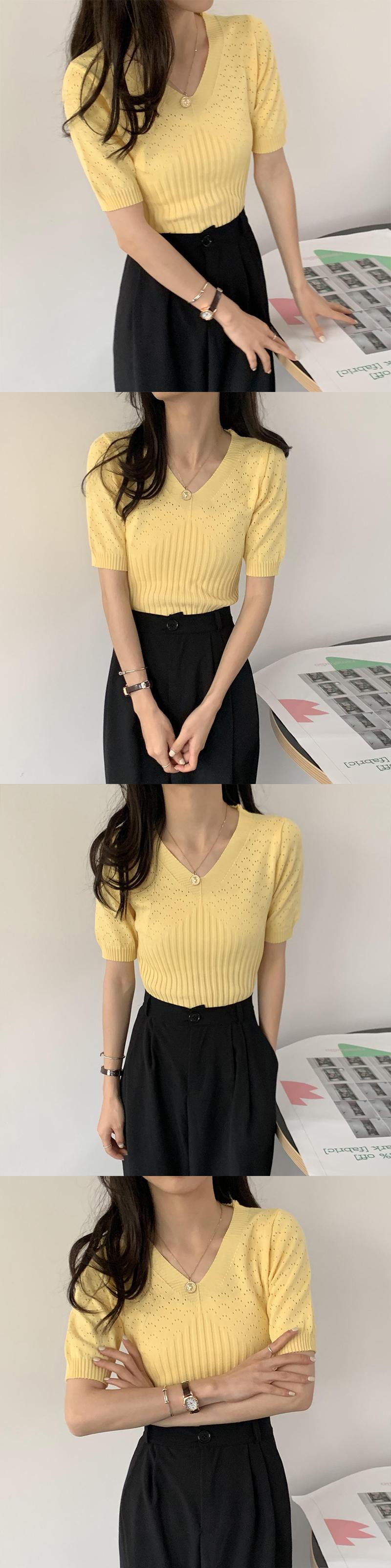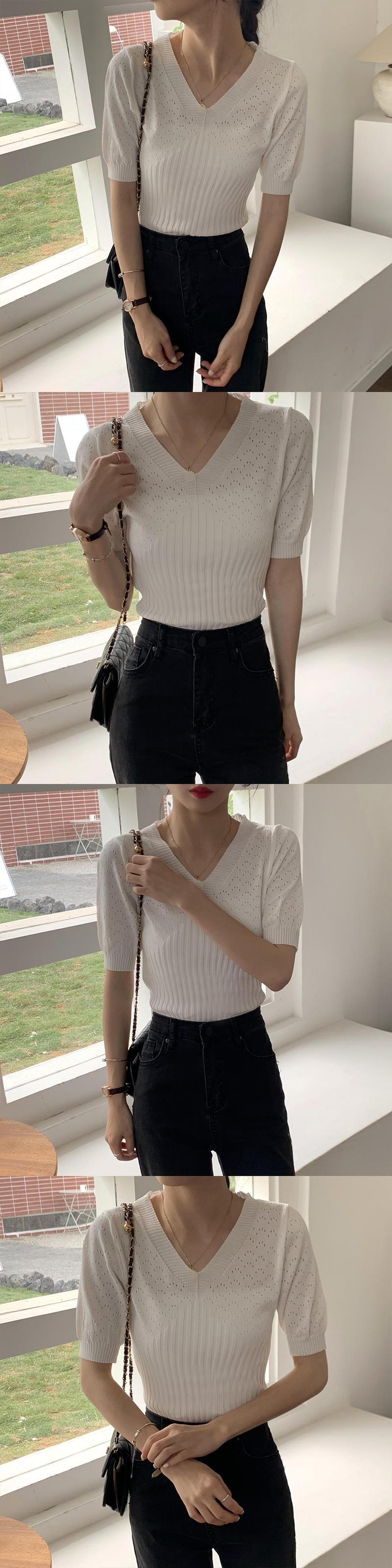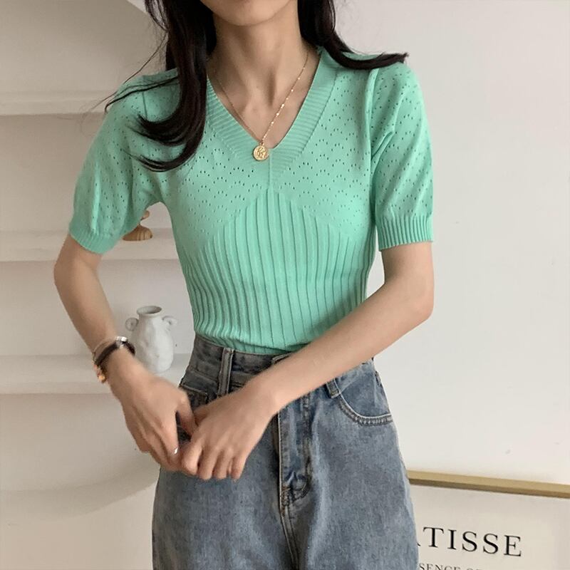 半袖スリーブニットTシャツ サマースリムフィットVネックトップス ショート ハーフスリーブ 夏物 シルク クレセントシティ63333046978