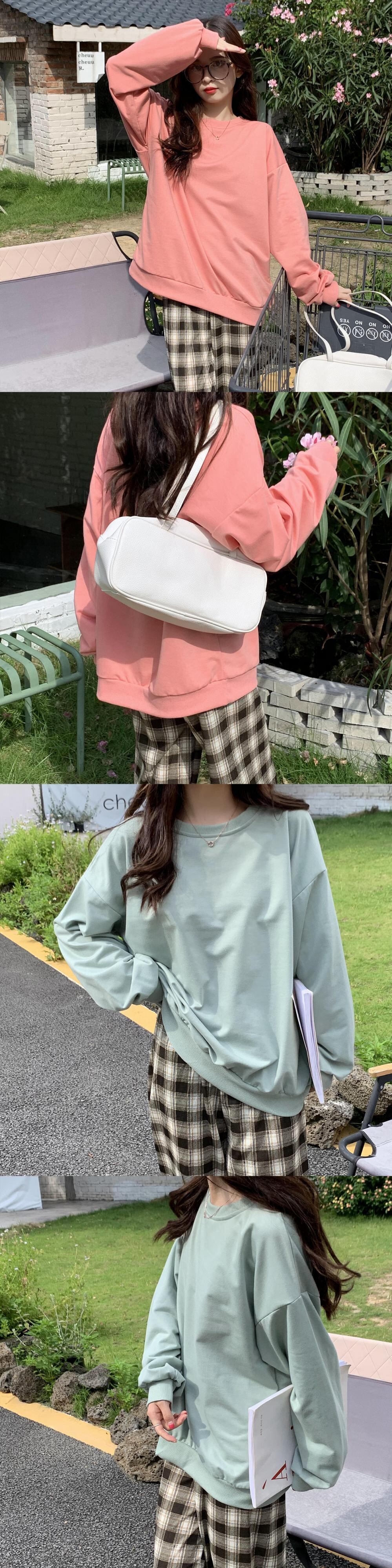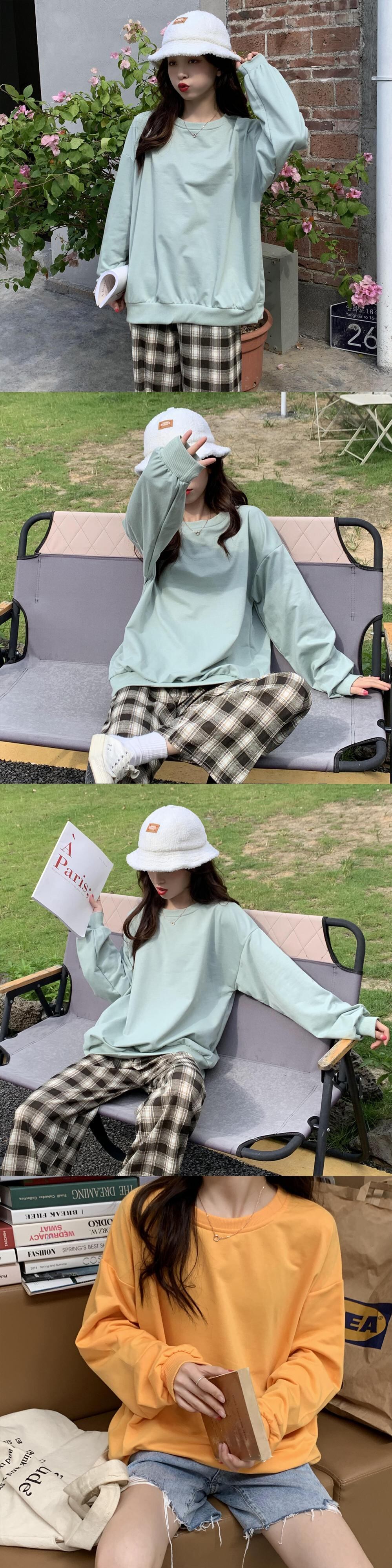 オータムソリッド カラーセーター ルーズカジュアルラウンドネックプルオーバー トップス ロング 秋物 Oネック ソリッドカラー クレセントシティ12531933417