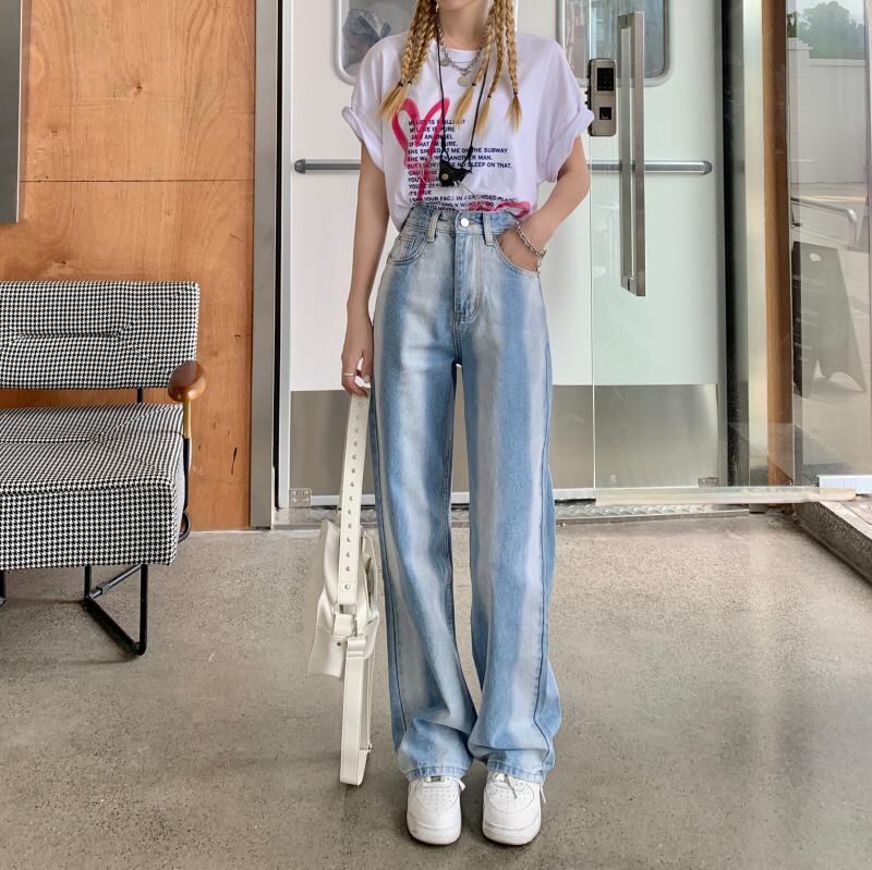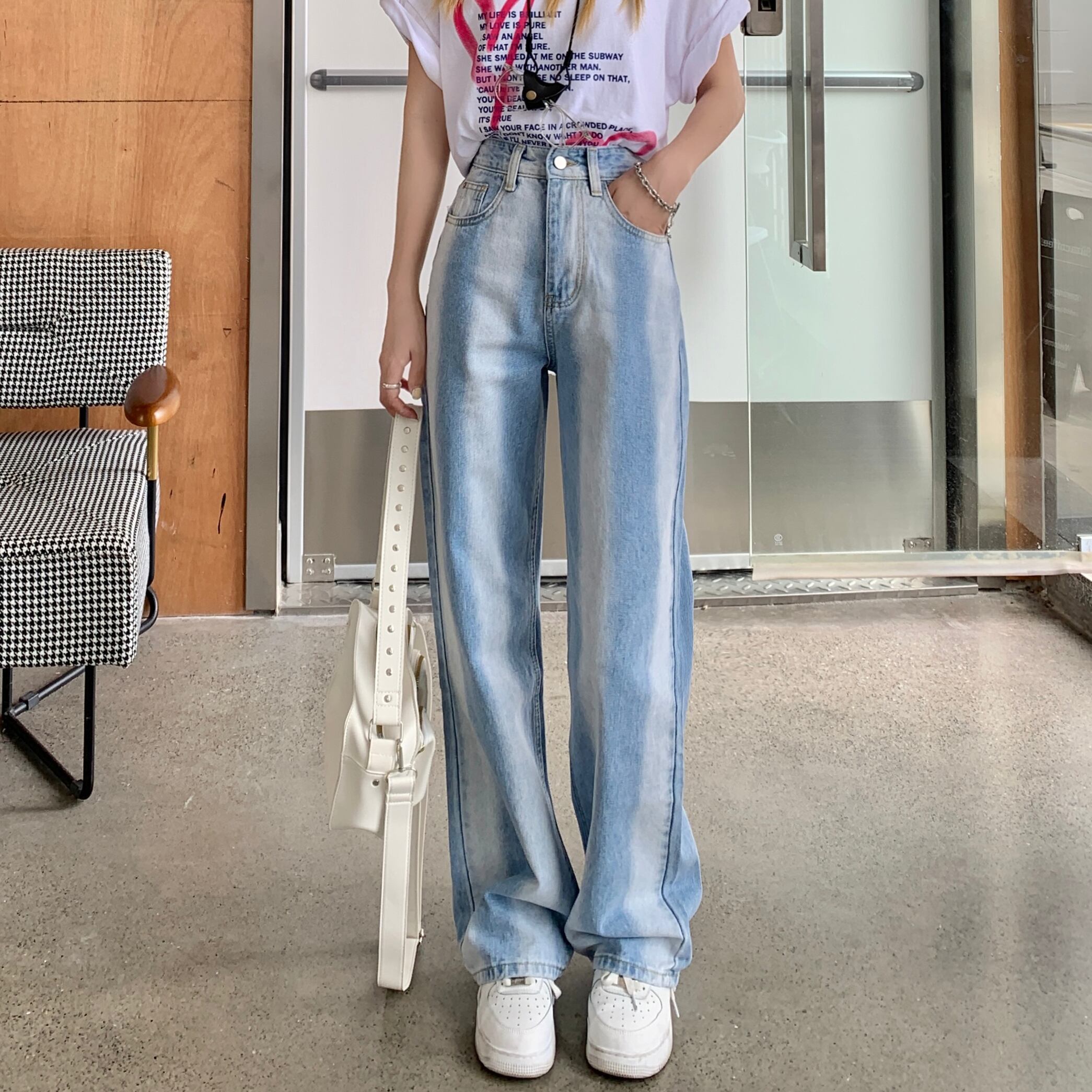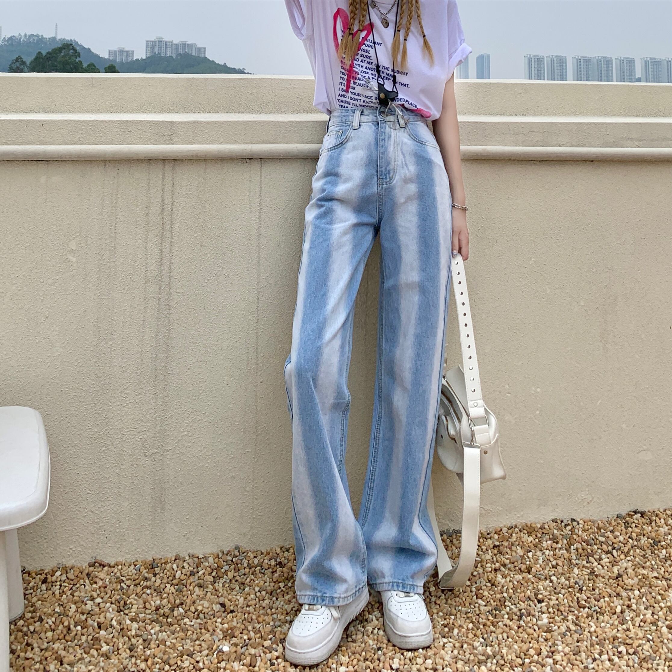 ストライプジーンズ サマールーズハイウェストパンツ 薄手 夏物 クレセントシティ48832673723