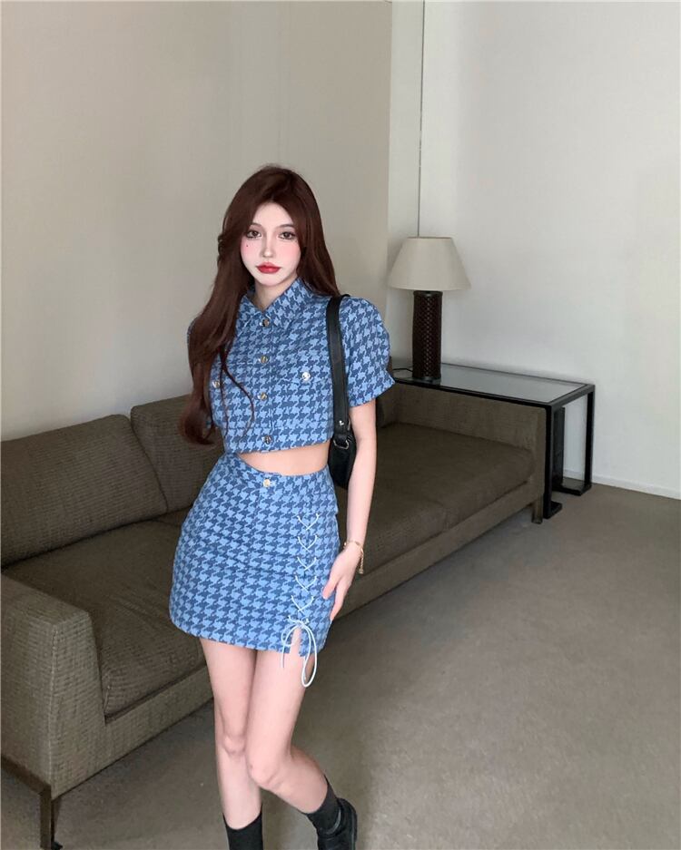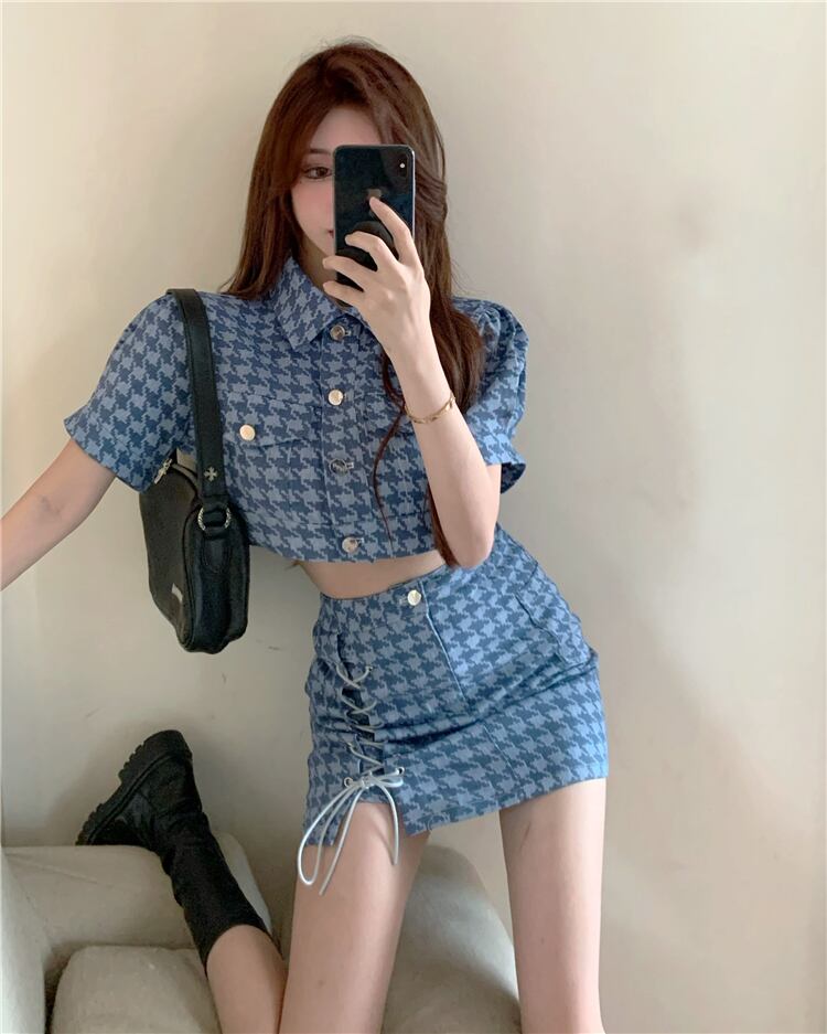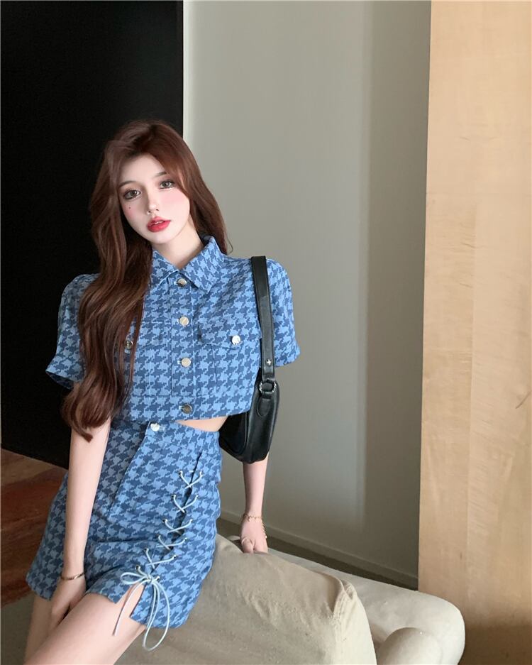 サマーショートカーディガンコート ストラップ ハイウェストウェストスカート ストリート 夏物 クレセントシティ25104518931