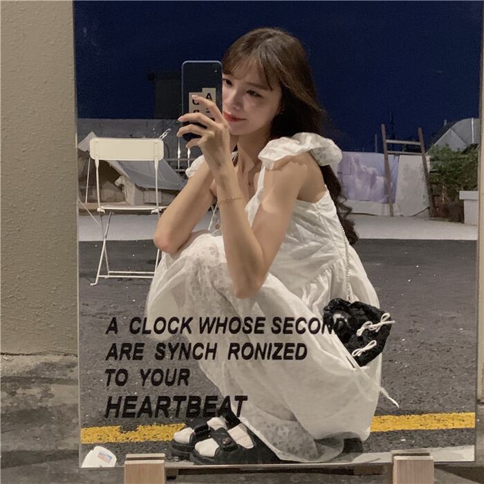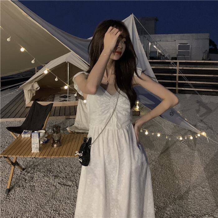 ホワイトドレス サマーVネックウェストAラインスカート 大人ガーリー スウィート キュート カジュアル 夏物 クレセントシティ37360137390