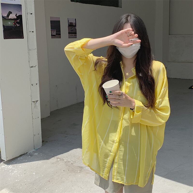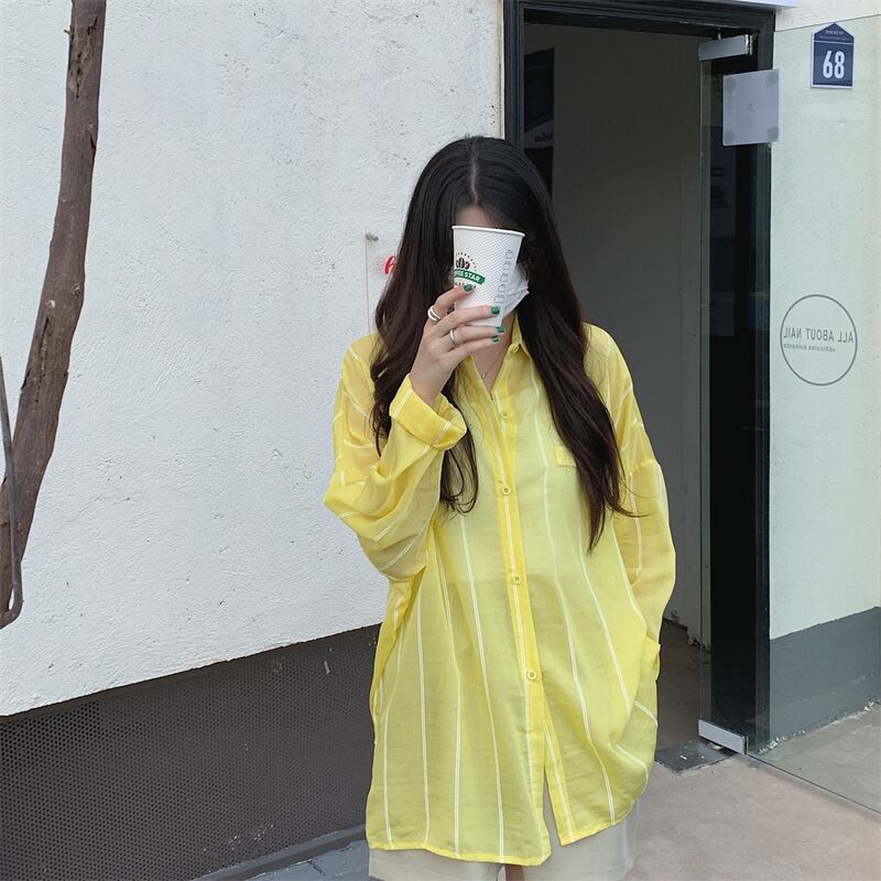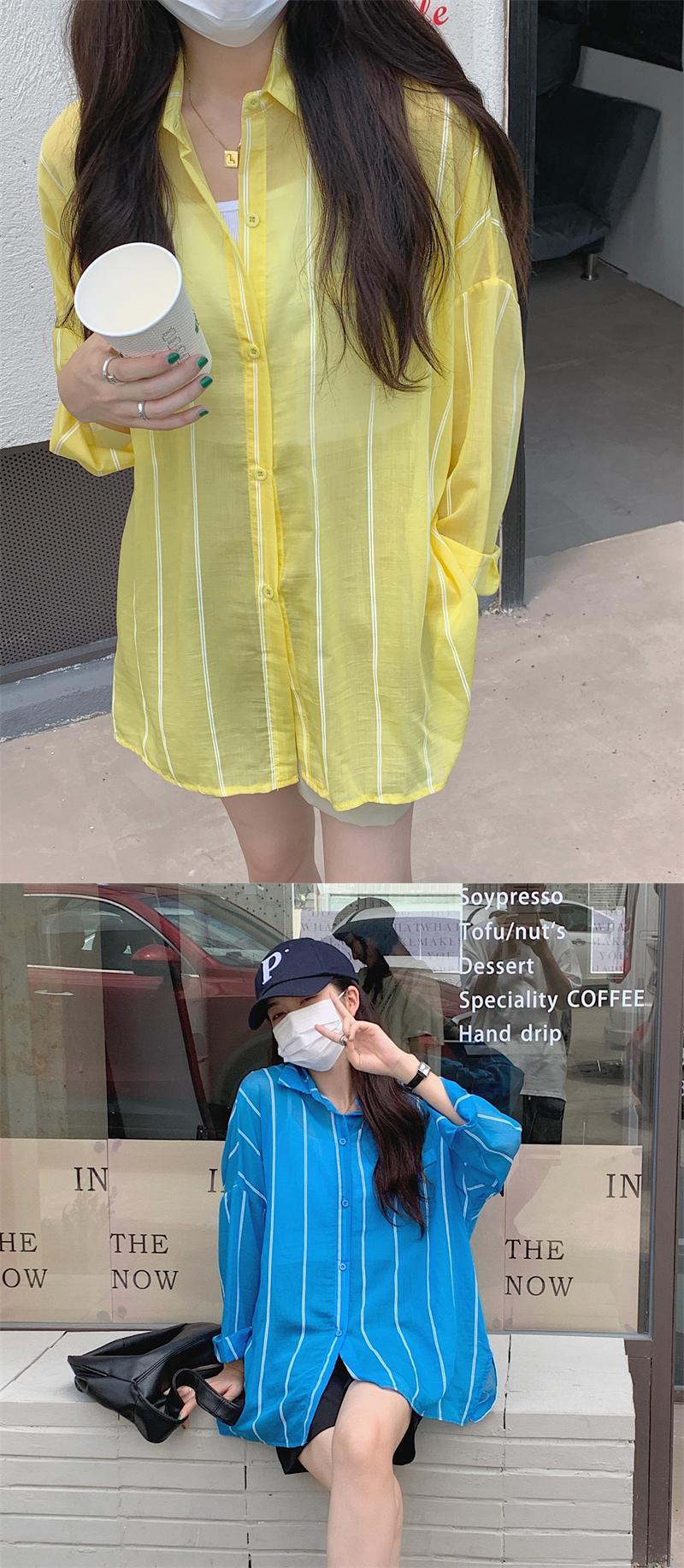 薄手ストライプシャツ サマールーズジャケット ロング 夏物 クレセントシティ51904571308