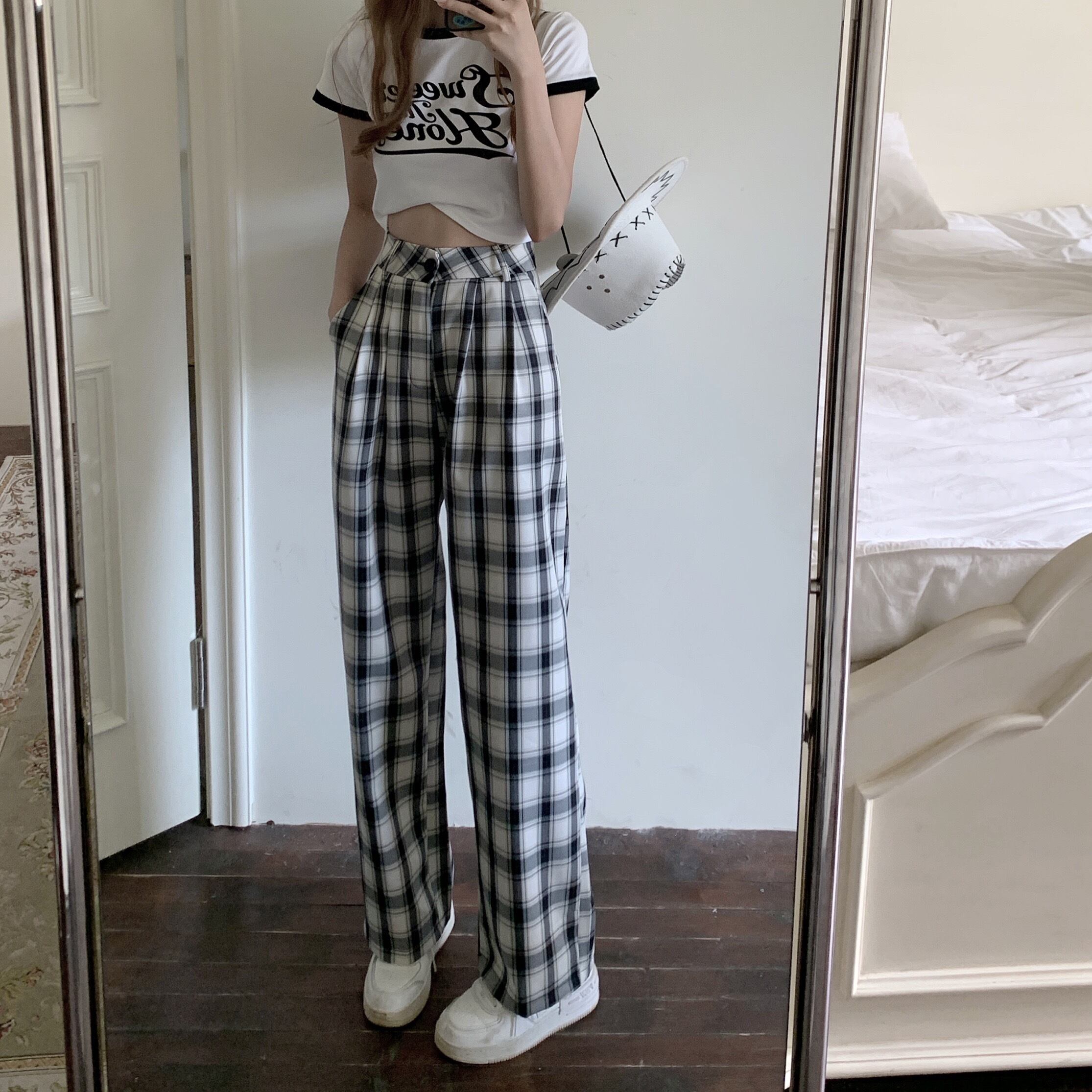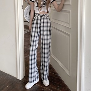 格子柄パンツ サマースタイル薄手ルーズハイウェストウェストカジュアル 夏物 クレセントシティ14191101574